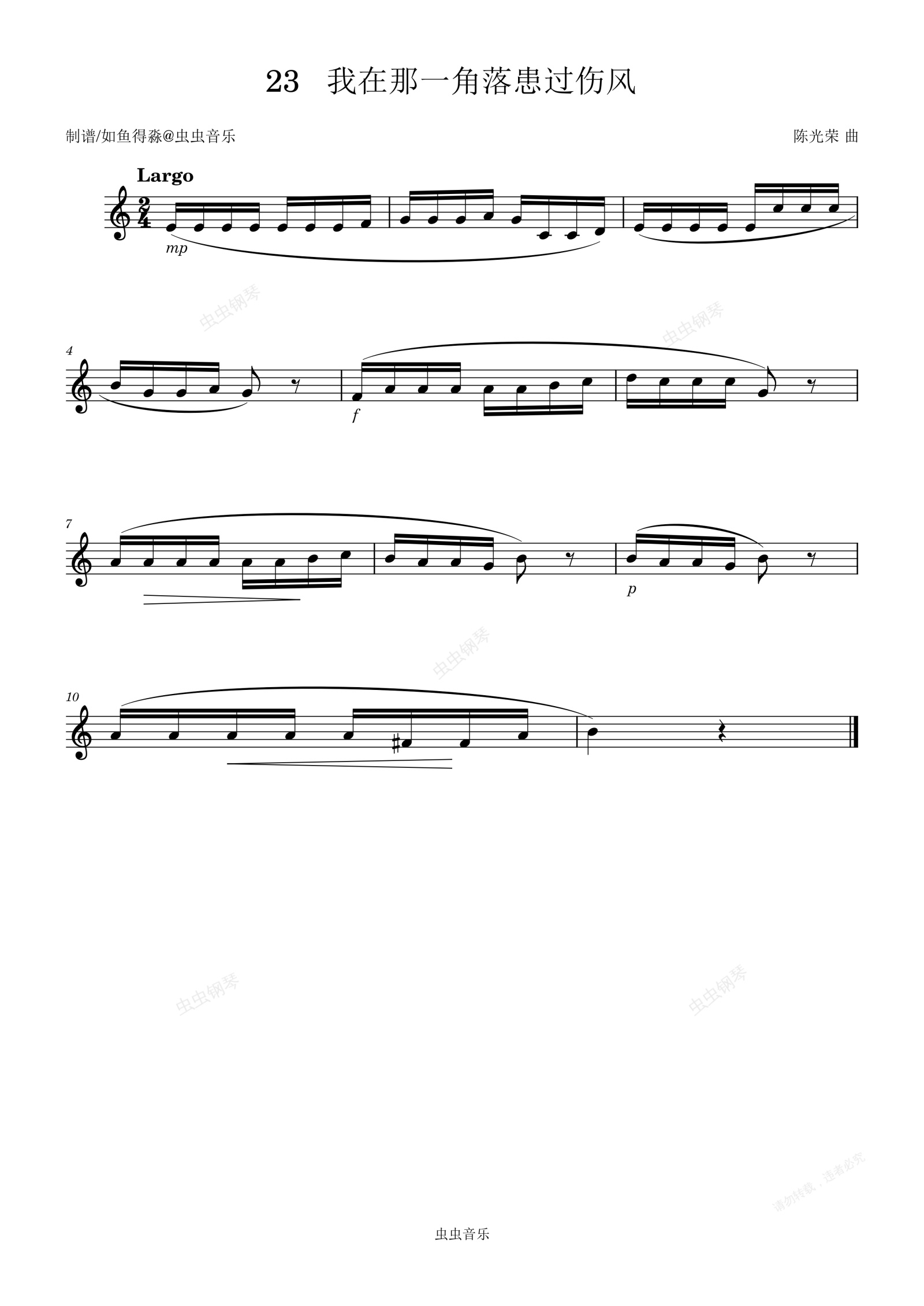 钢琴谱:视唱练耳考试曲23-我在那一角落患过伤风