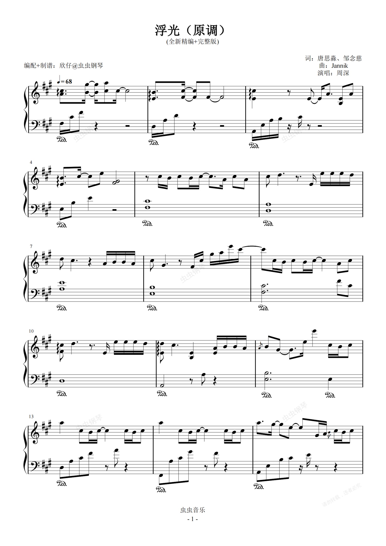 钢琴谱:周深-A《浮光》(全新精编+完整版)
