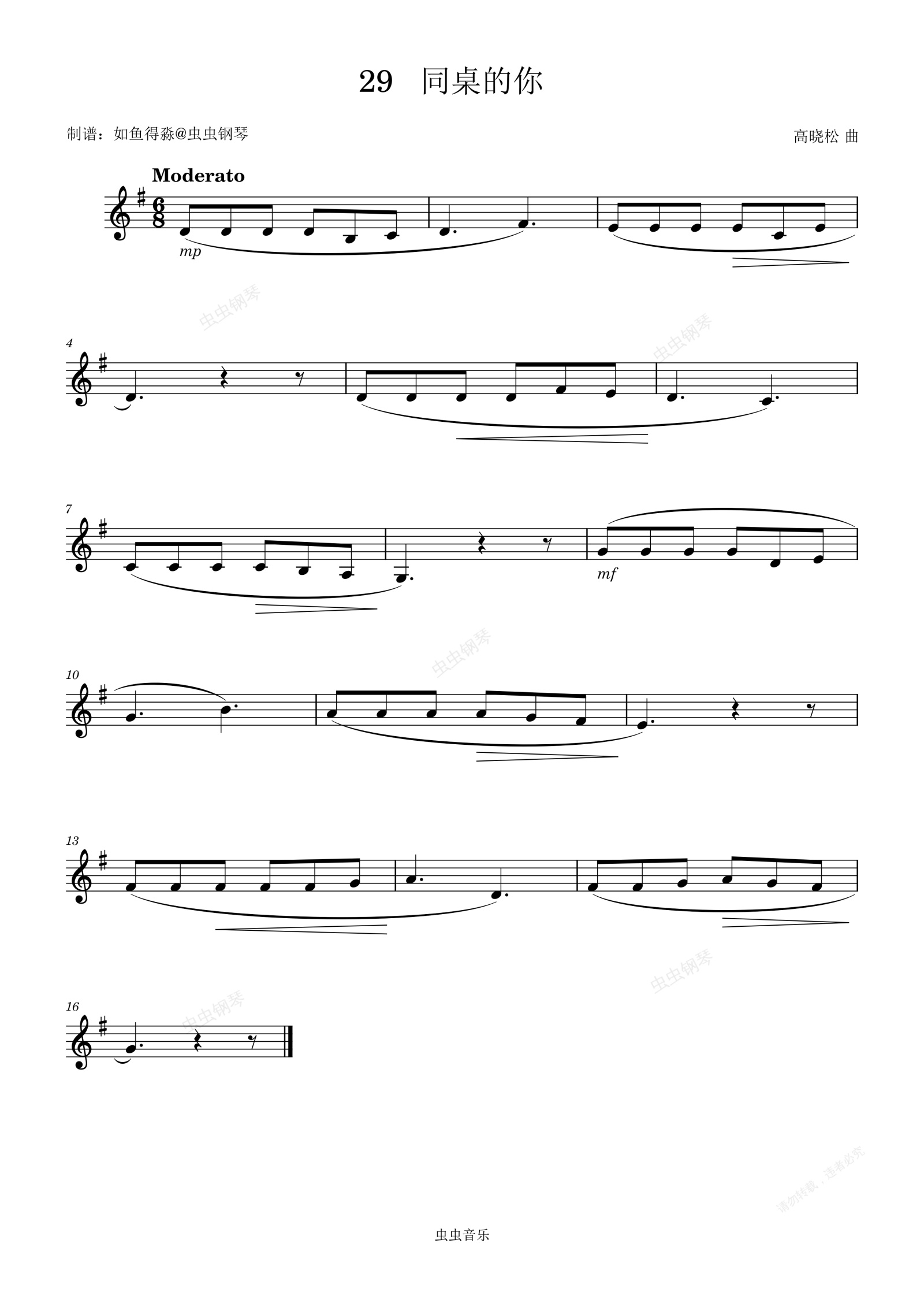 钢琴谱:视唱练耳考试曲29-同桌的你