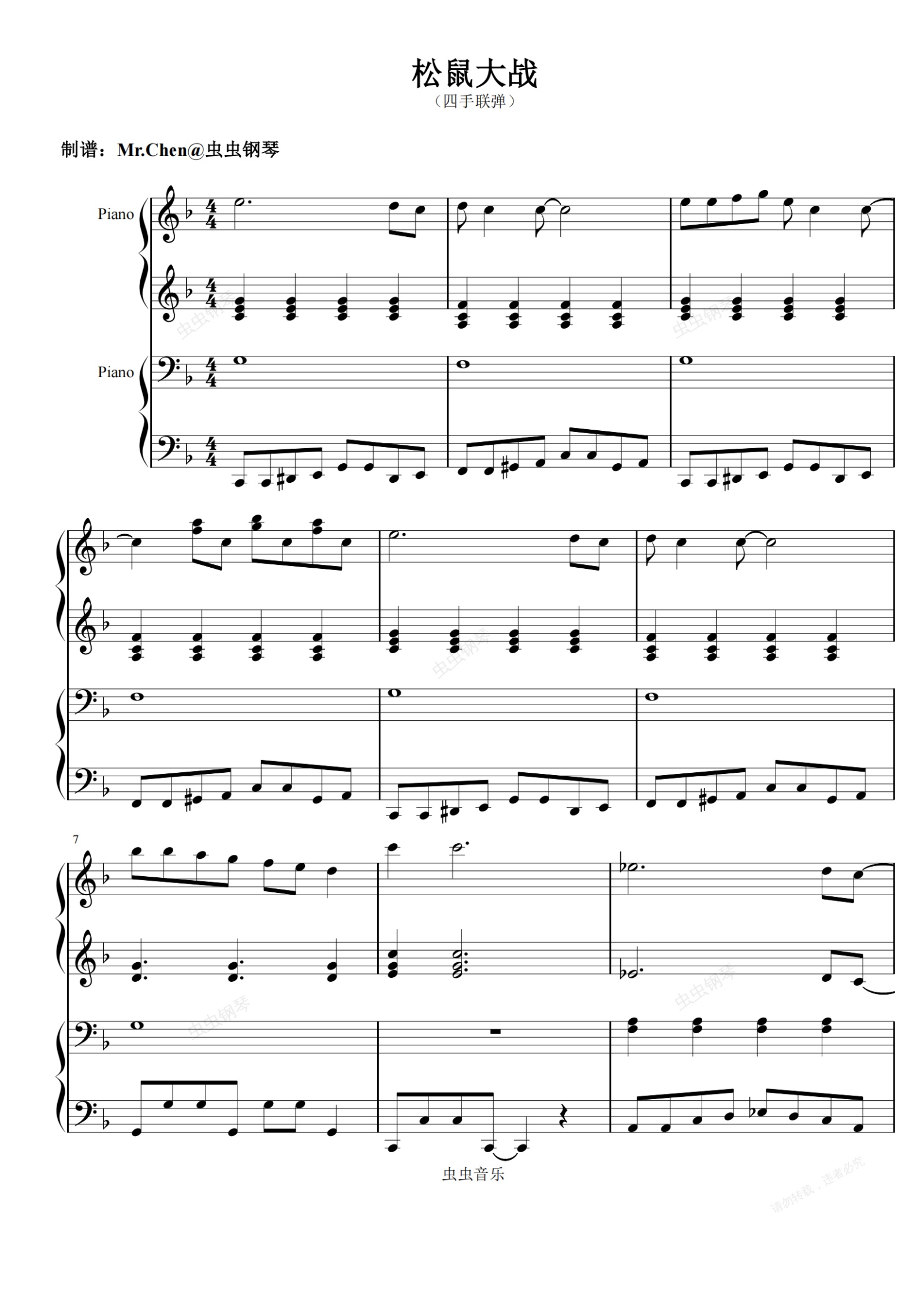 钢琴谱:【四手联弹】松鼠大战-任天堂