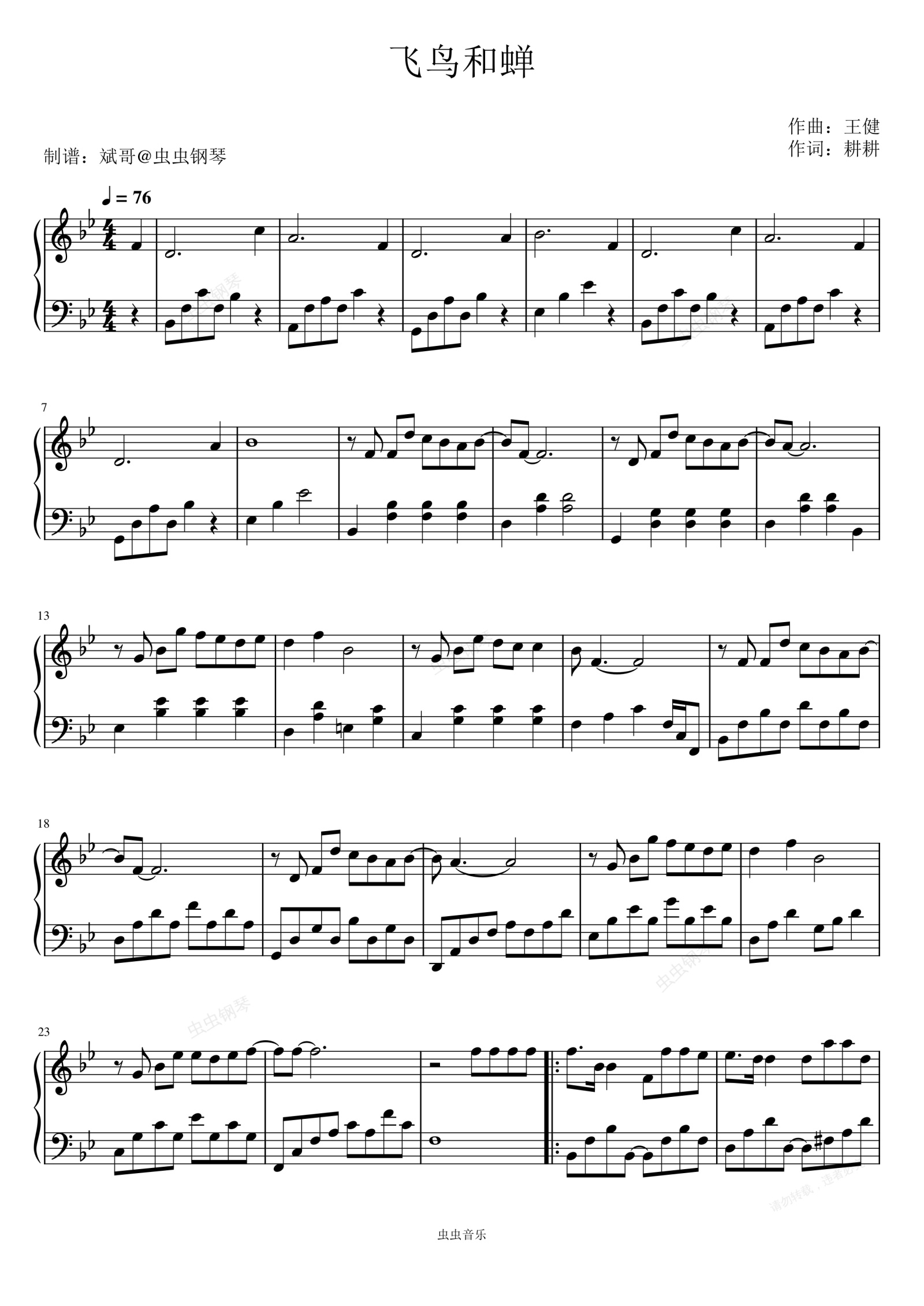 钢琴谱:飞鸟和蝉 - 任然