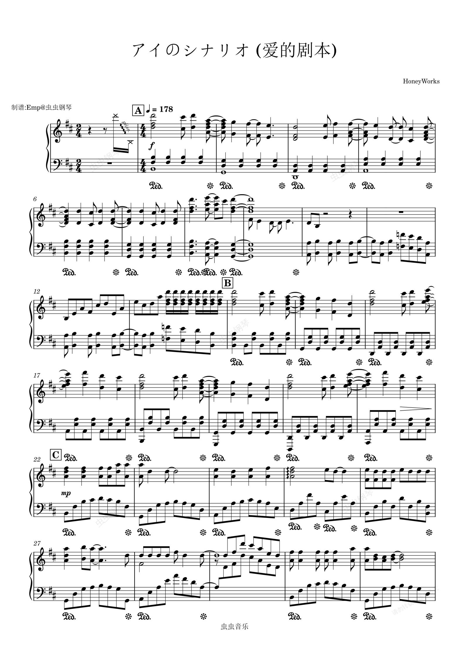 钢琴谱:アイのシナリオ (爱的剧本) —《怪盗基德1412》13-24集片头曲 钢琴改编