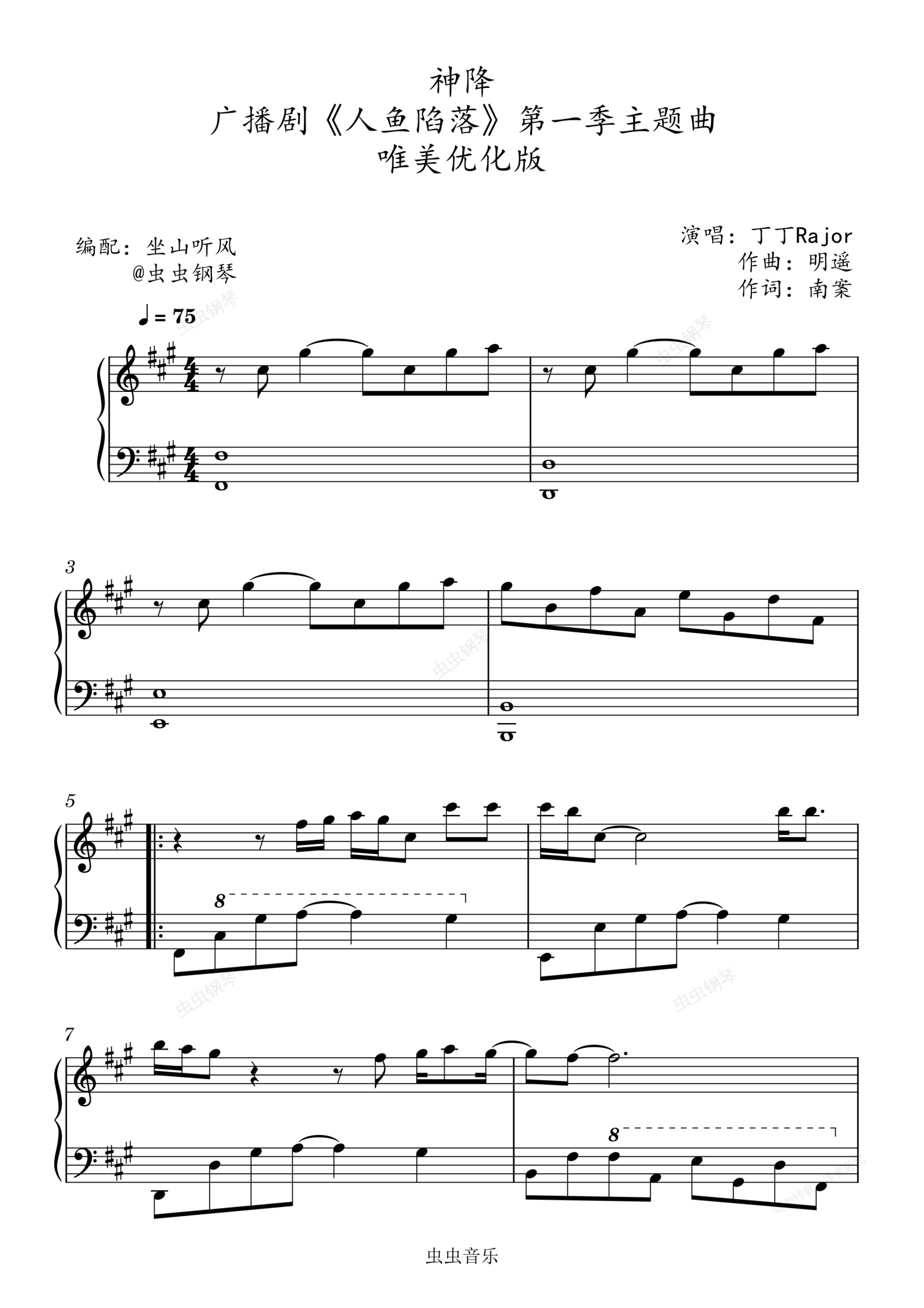 钢琴谱:《神降》—— 广播剧《人鱼陷落》第一季主题曲 唯美优化版