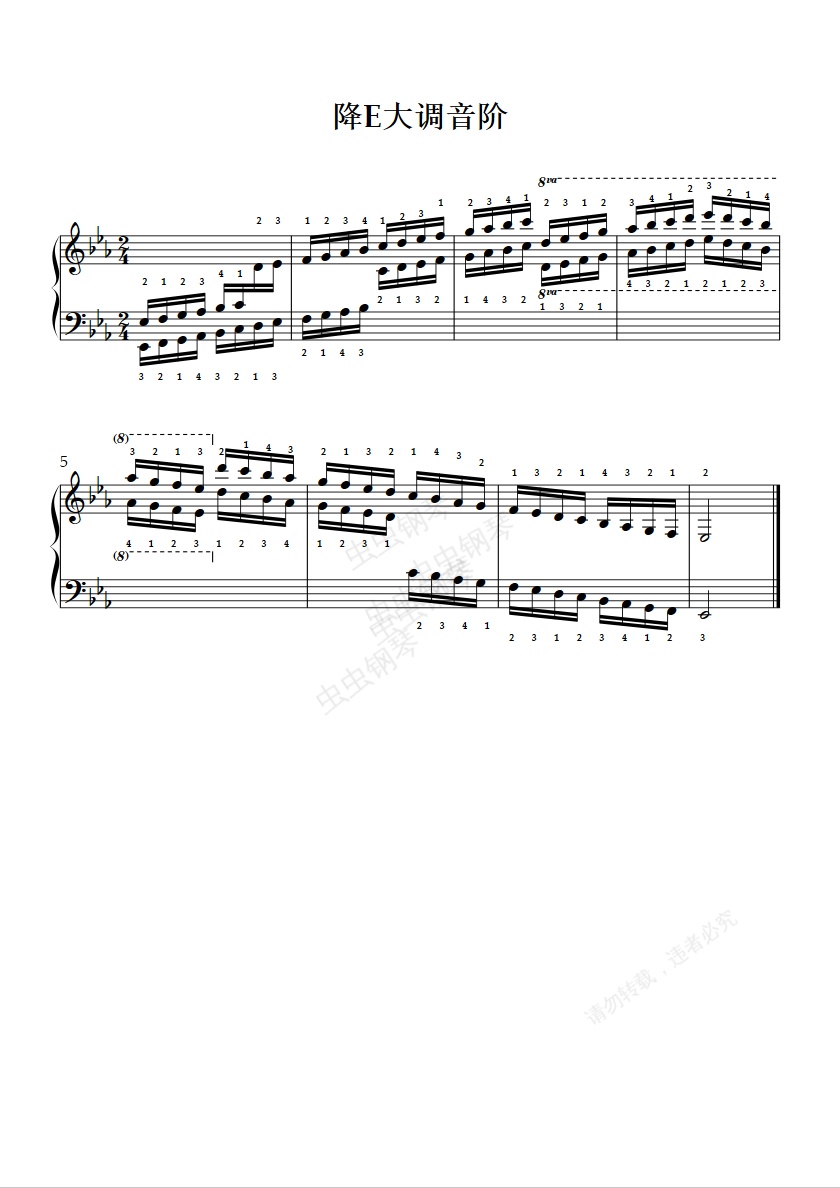 钢琴谱:13-1-4降E大调音阶(同向四个八度)