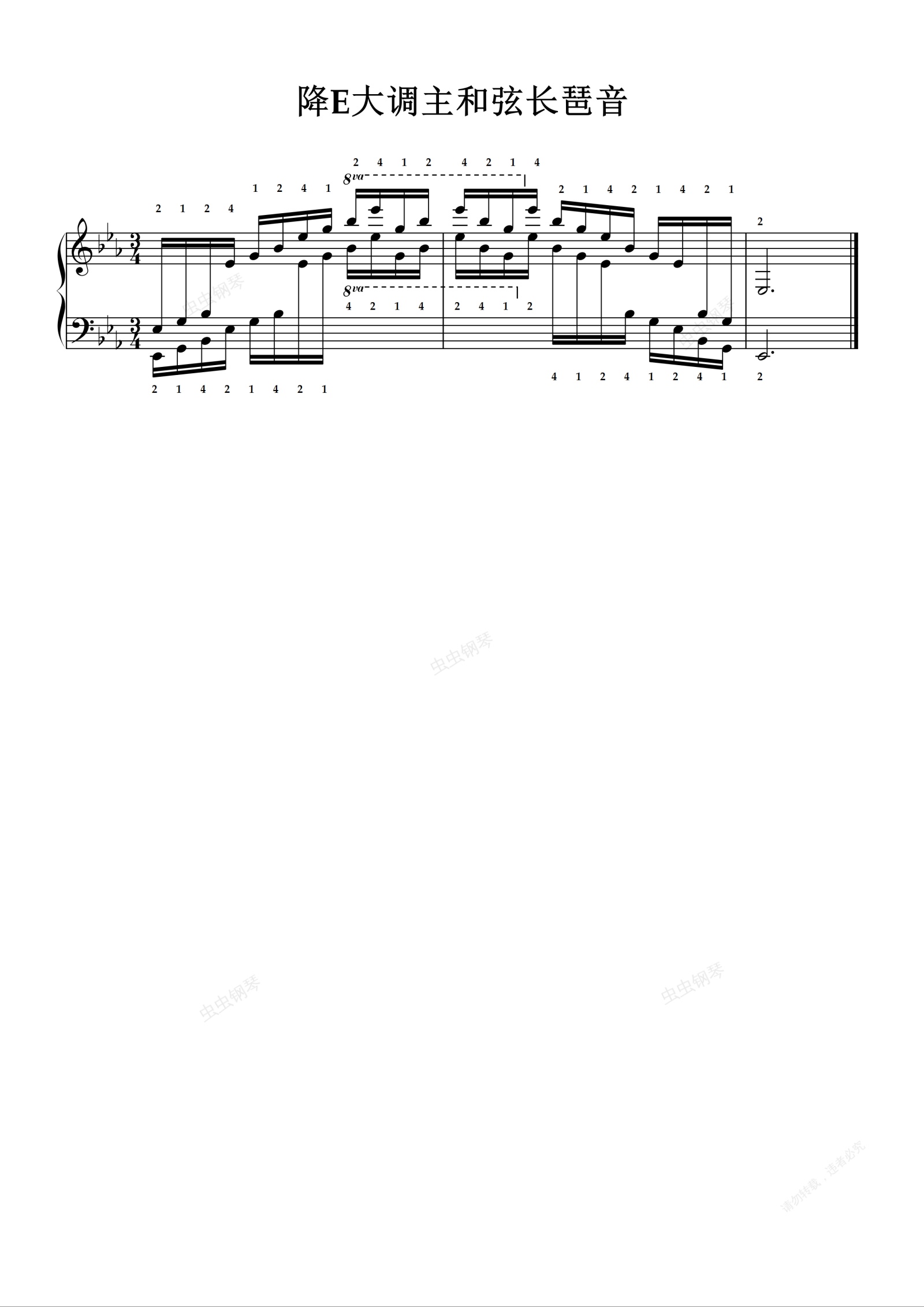 钢琴谱:13-5-2降E大调主和弦长琶音(同向四个八度)