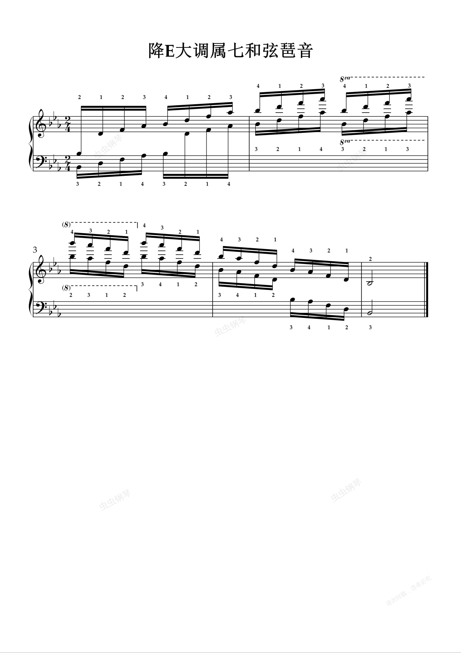 钢琴谱:113-6-2降E大调属七和弦琶音(同向四个八度)