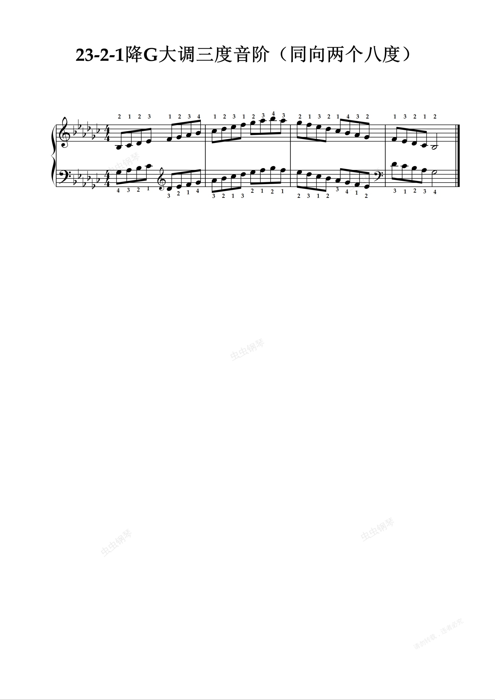 钢琴谱:23-2-1降G大调三度音阶(同向两个八度)