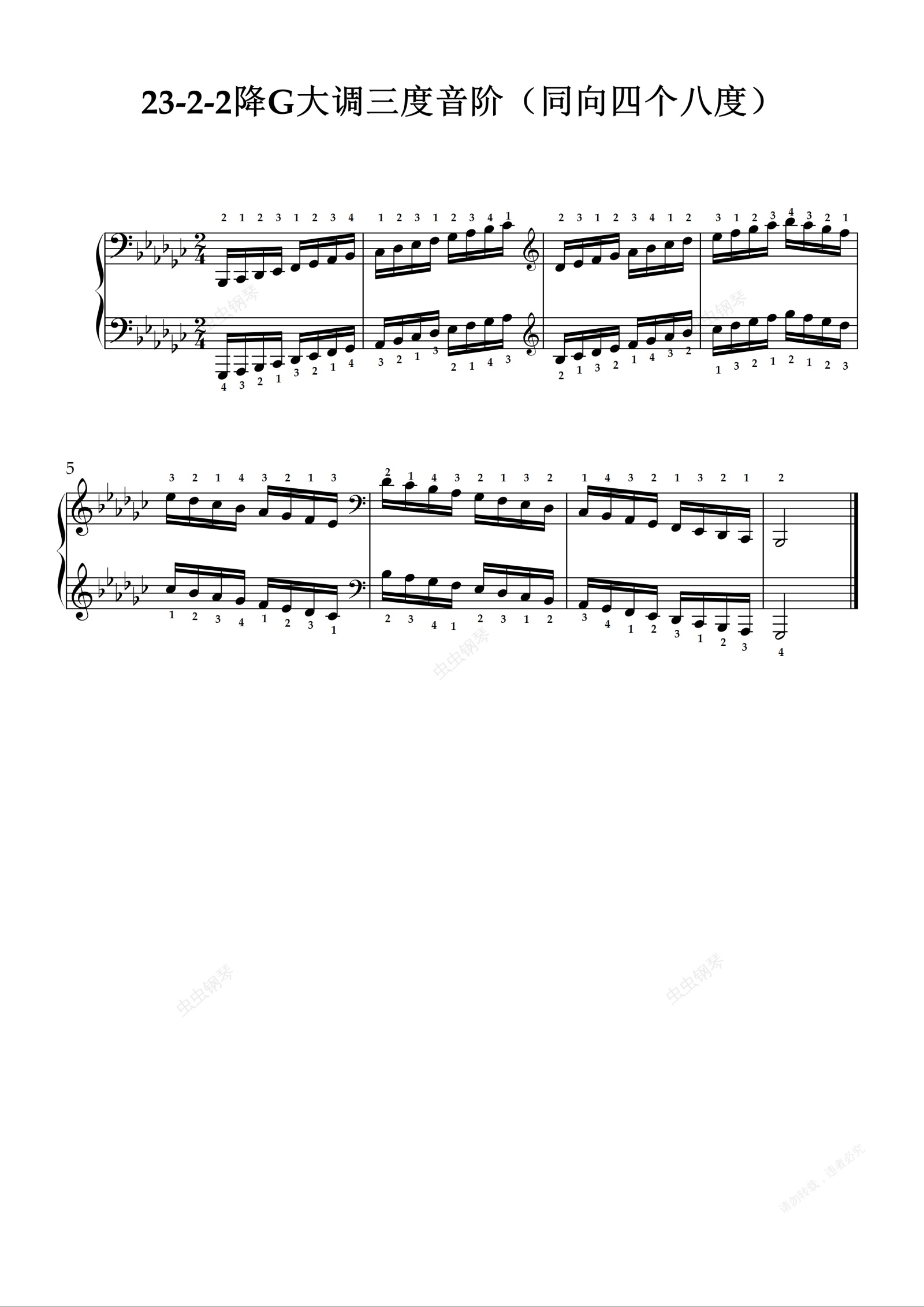 钢琴谱:23-2-2降G大调三度音阶(同向四个八度)