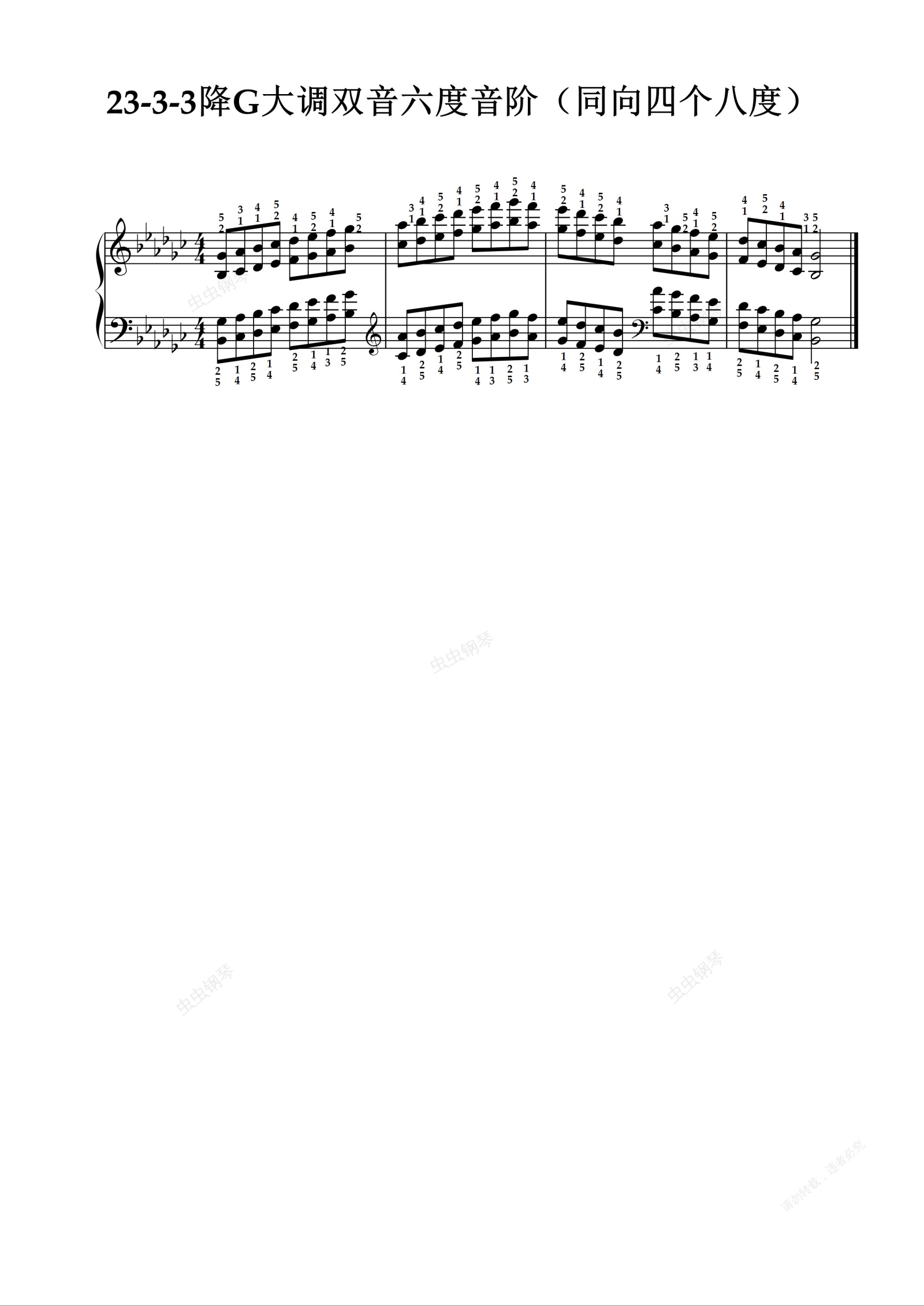钢琴谱:23-3-3降G大调双音六度音阶(同向四个八度)