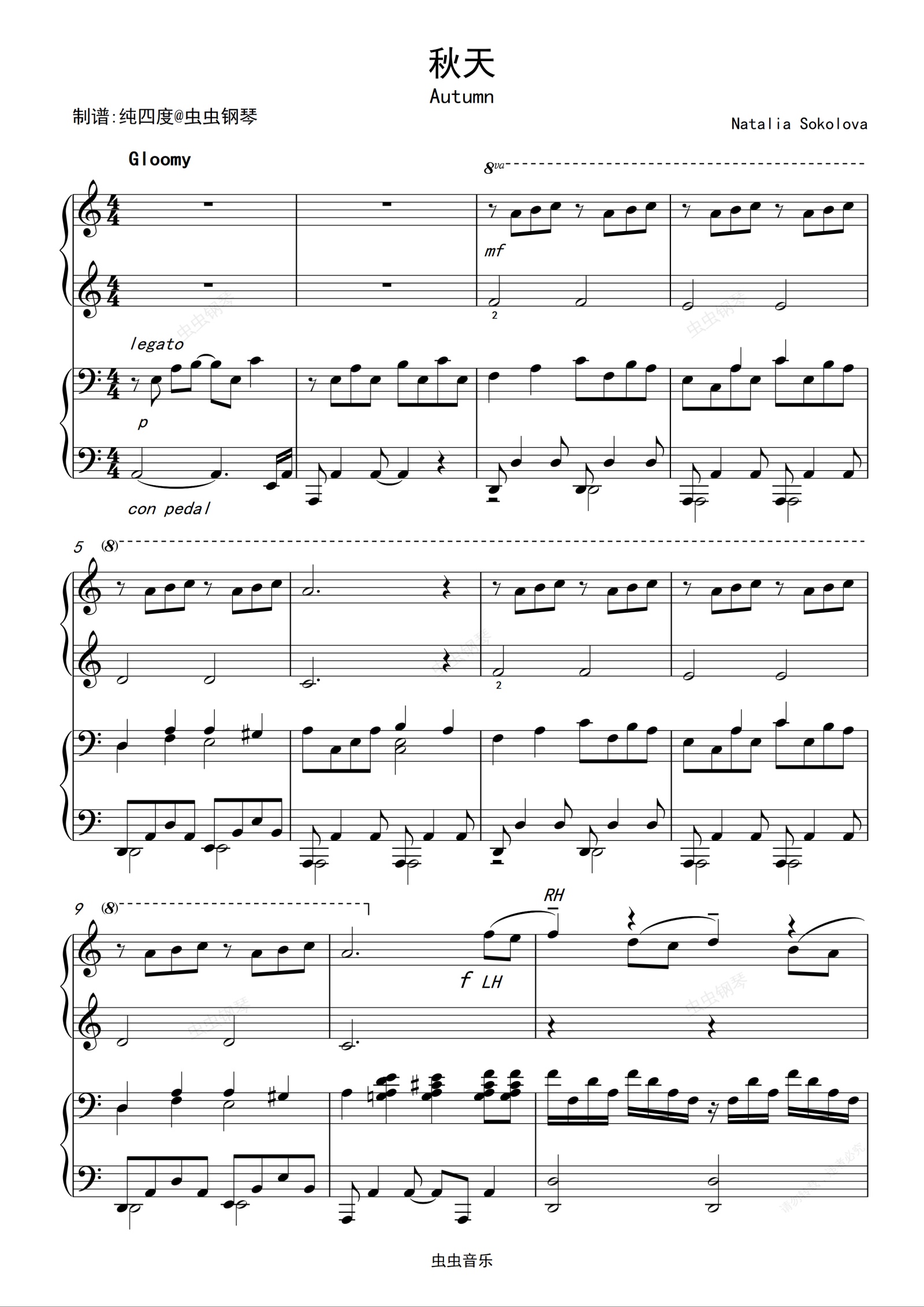 钢琴谱:Autumn(秋天)四手联弹