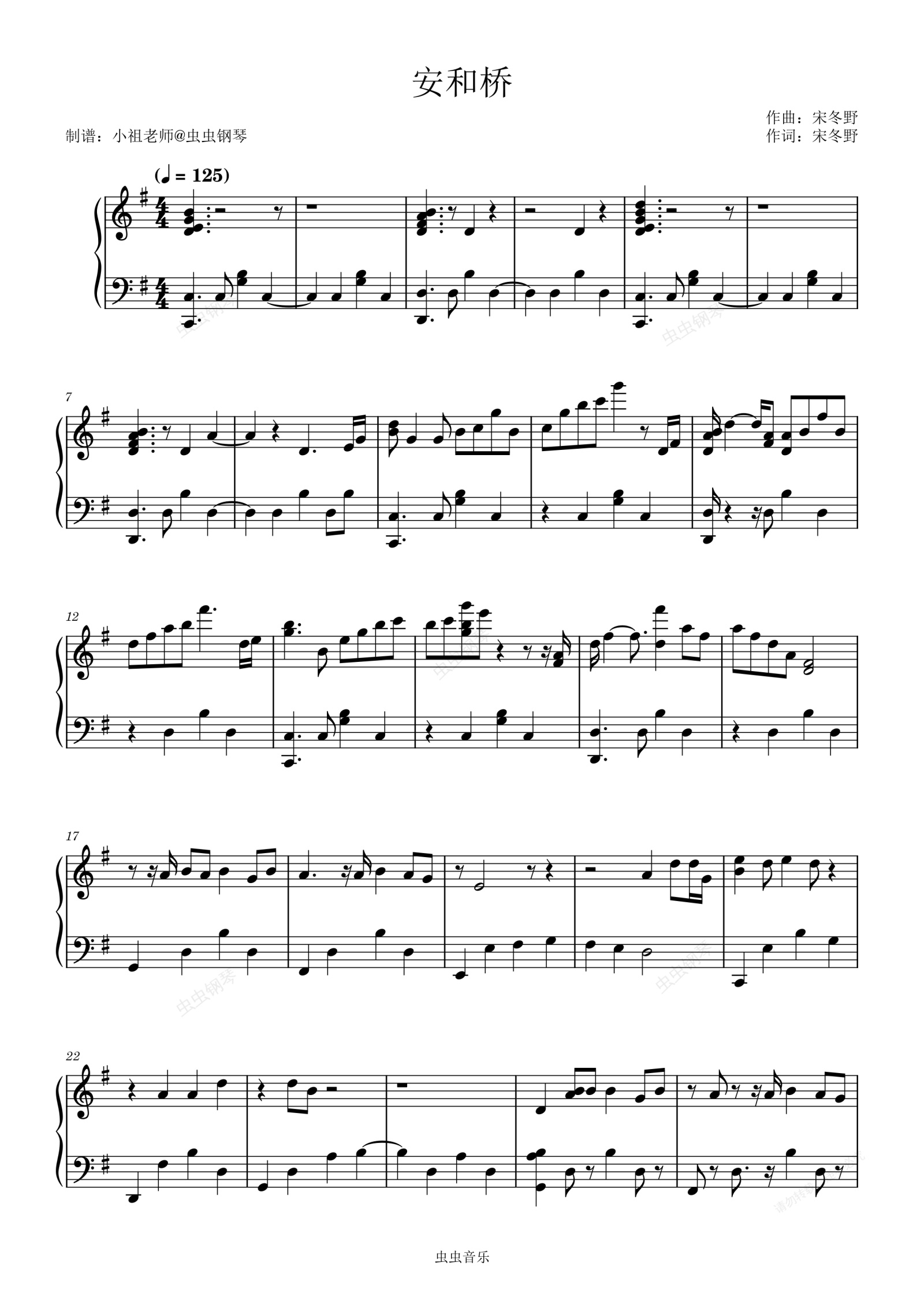 钢琴谱:安和桥 宋冬野 简单完美版
