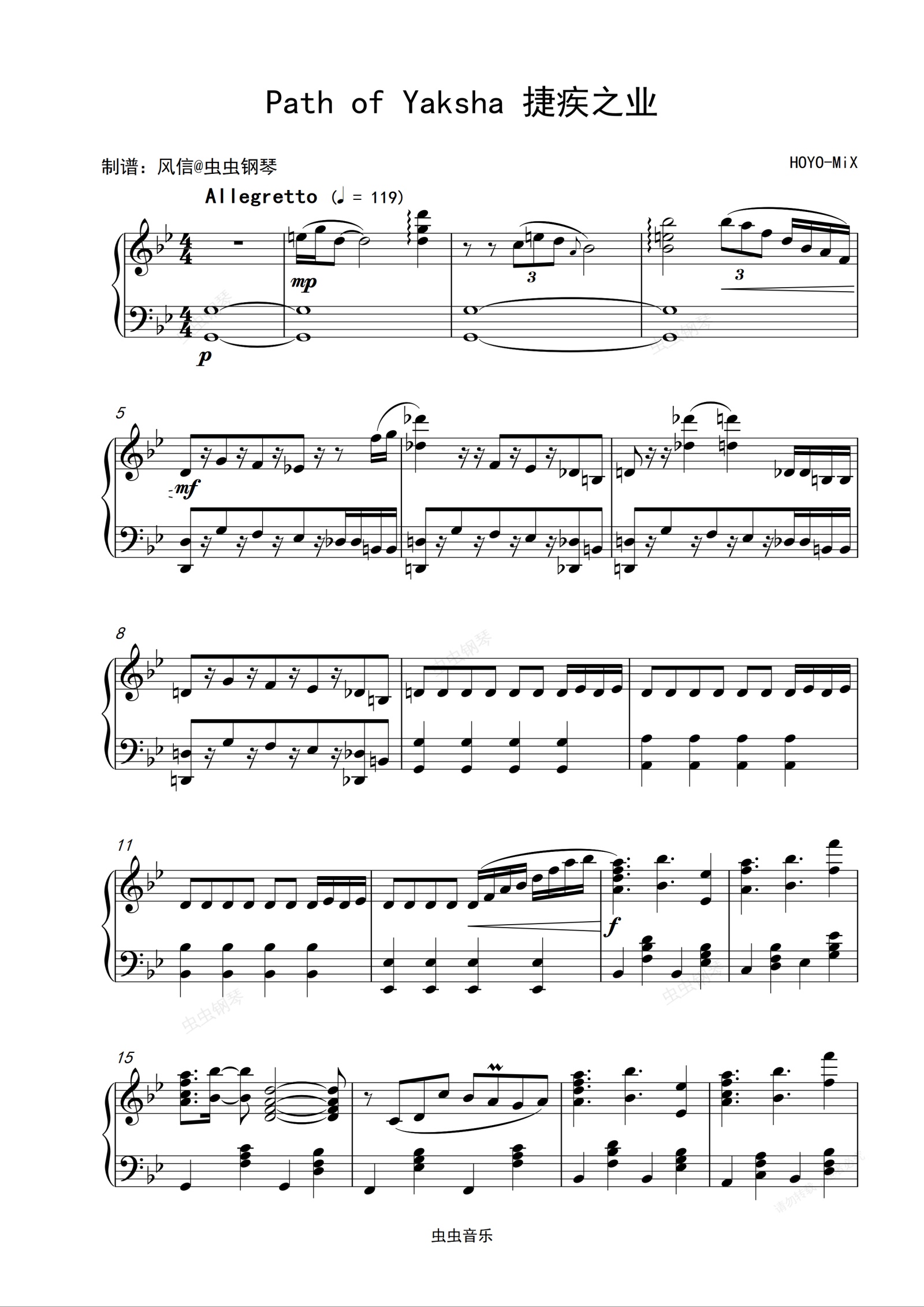 钢琴谱:【原神】魈角色演示BGM-Path of Yaksha 捷疾之业