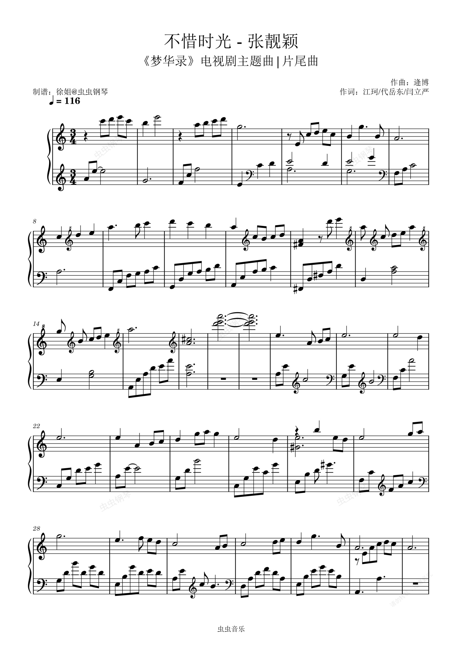 钢琴谱:不惜时光 (《梦华录》电视剧主题曲|片尾曲) - 张靓颖【C调】