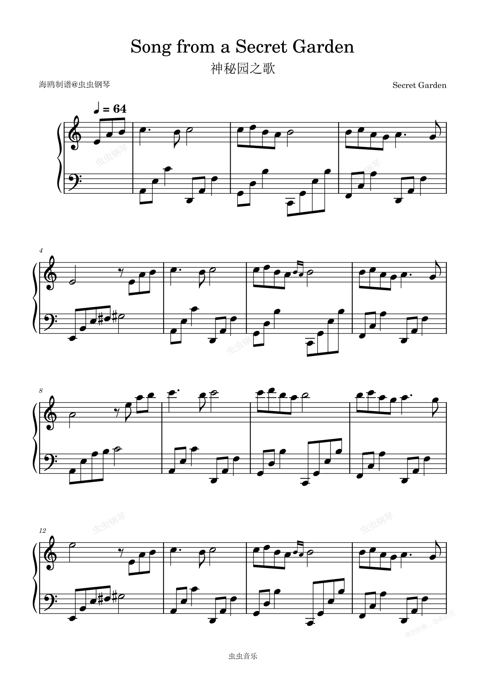 钢琴谱:神秘园之歌C调【唯美还原】-Secret Garden-Song from a Secret Garden