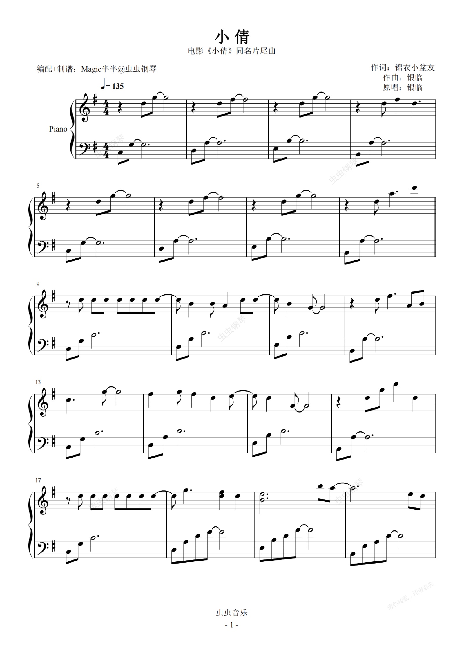钢琴谱:小倩 <小倩>电影同名片尾曲