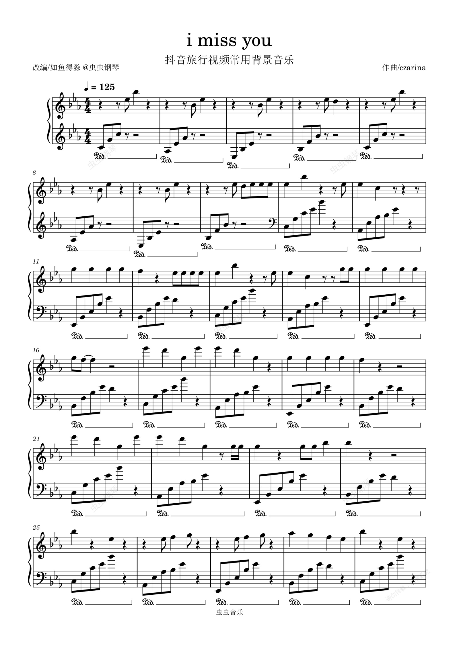 钢琴谱:抖音风景视频常用BGM i miss you老鱼版