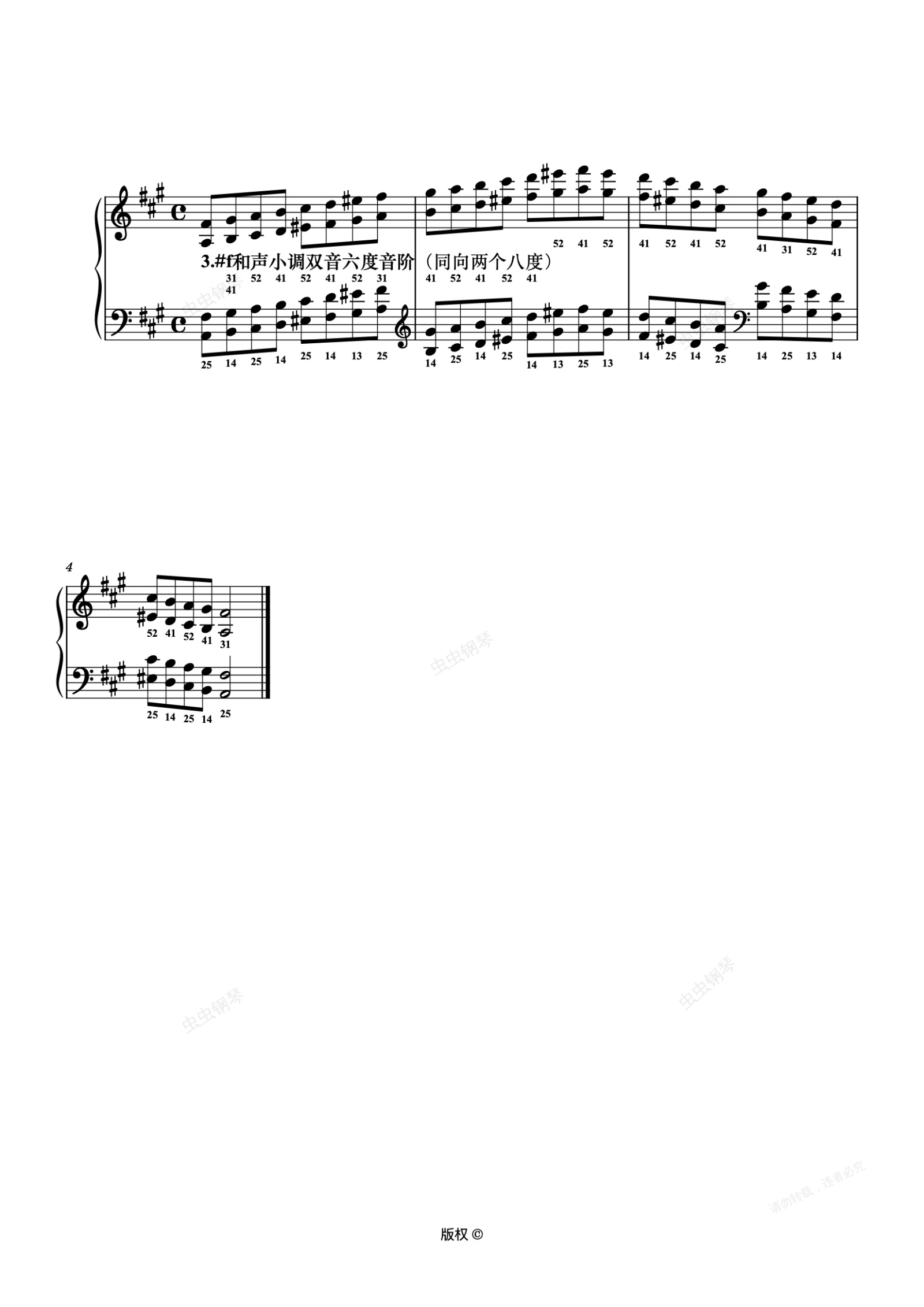钢琴谱:12-3-3.f#和声小调双音六度音阶(同向两个八度)