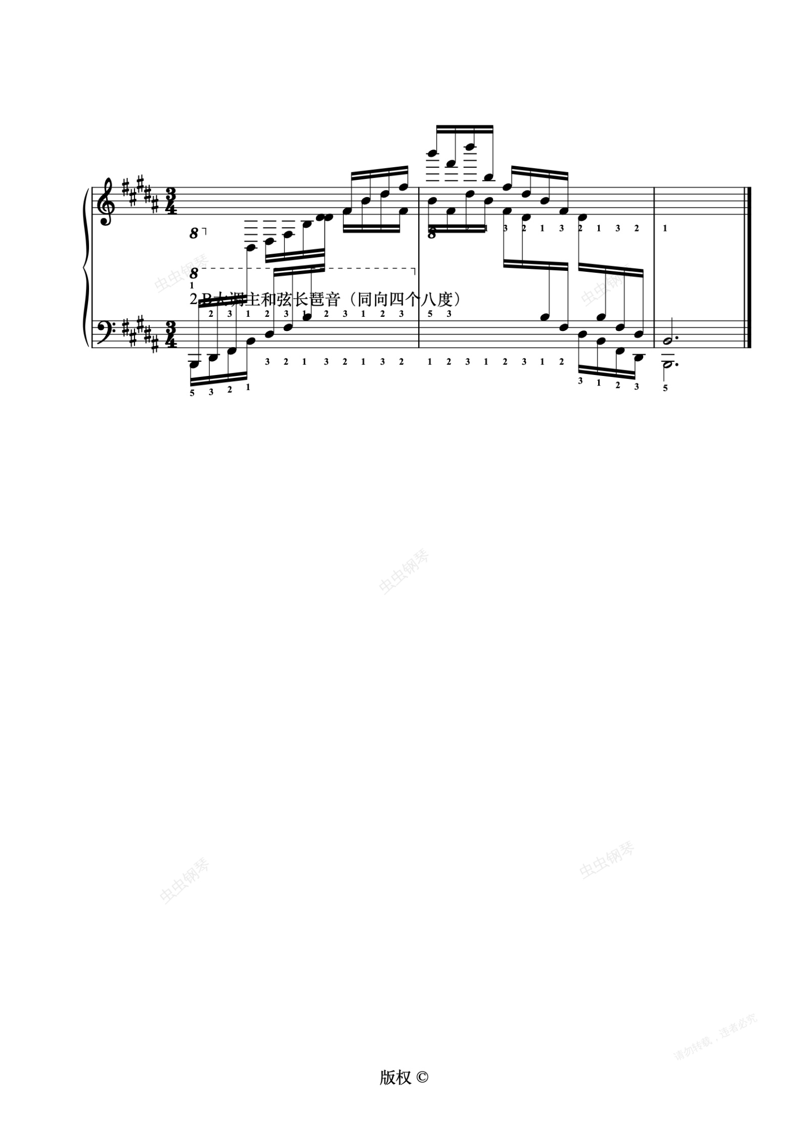 钢琴谱:19-5-2.B大调主和弦长琶音(同向四个八度)
