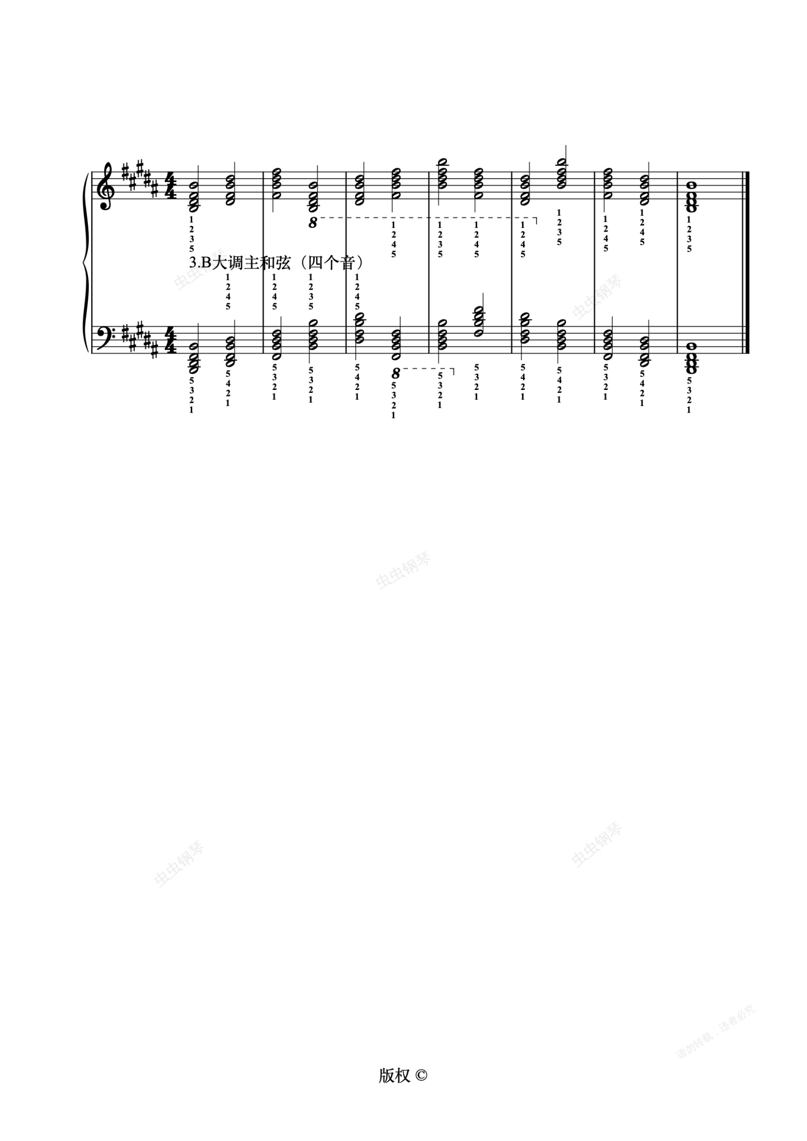 钢琴谱:19-4-3.B大调主和弦(四个音)