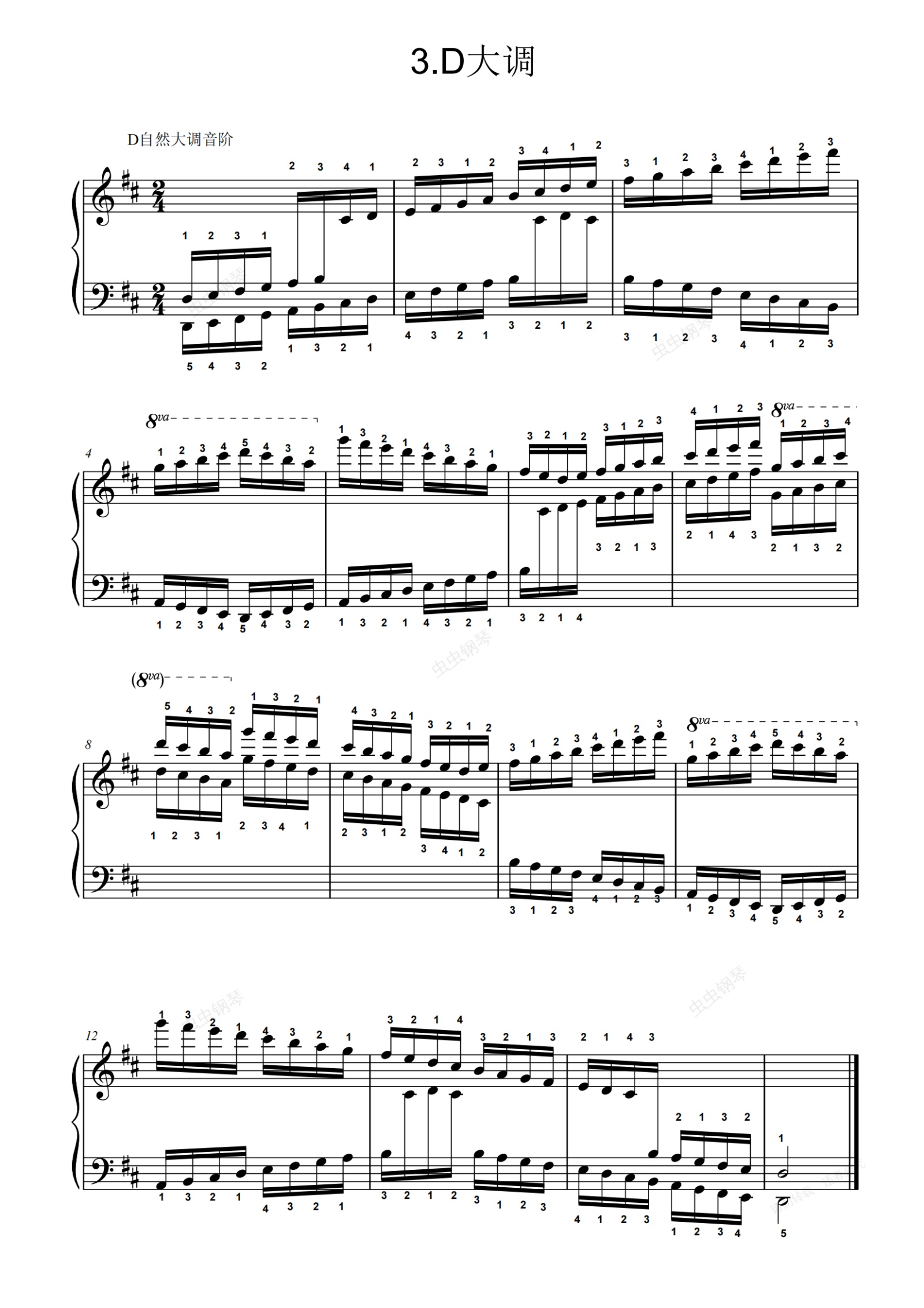 钢琴谱:9级-基本练习-3.D大调音阶
