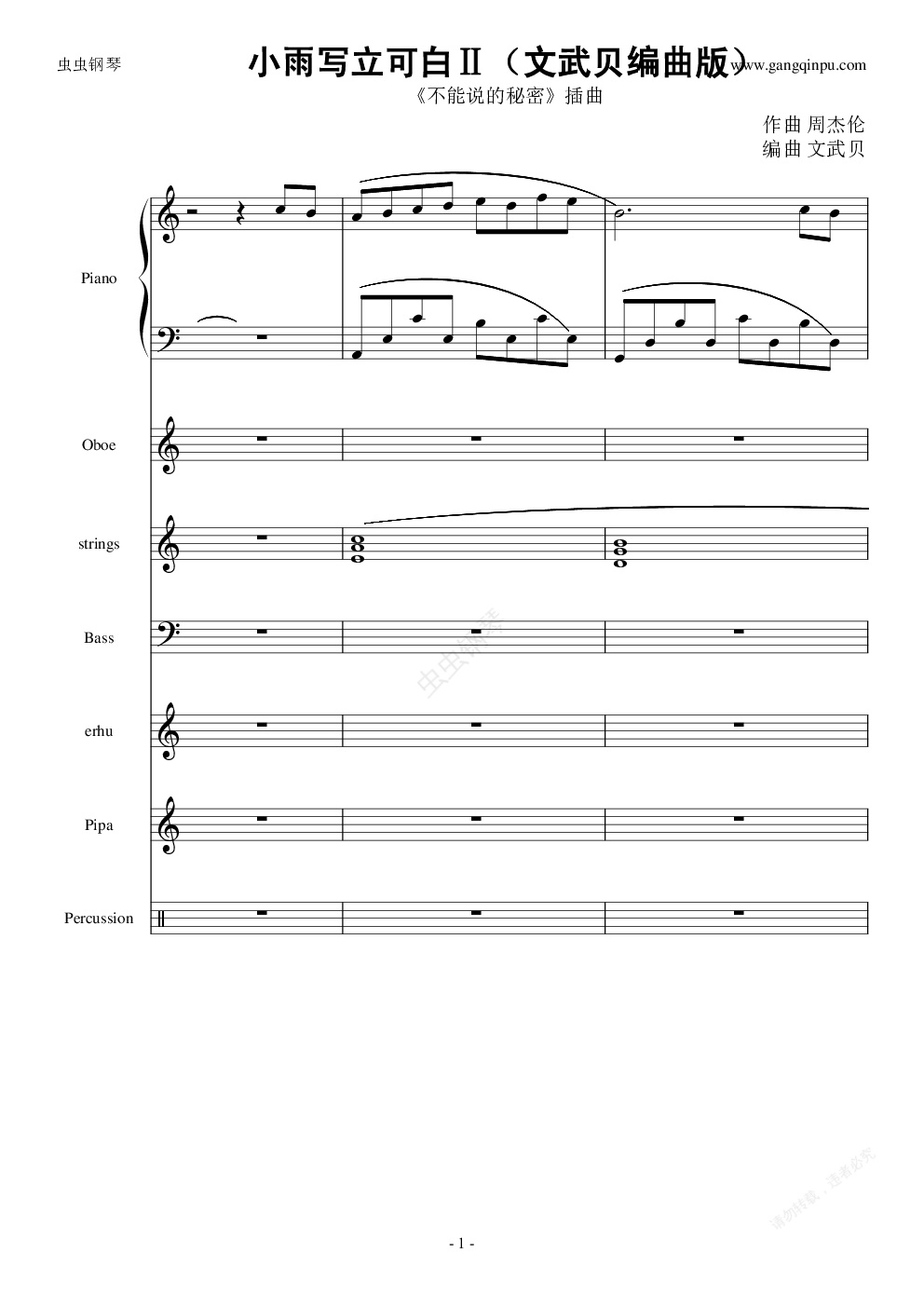 钢琴谱:小雨写立可白II(文武贝编曲版)