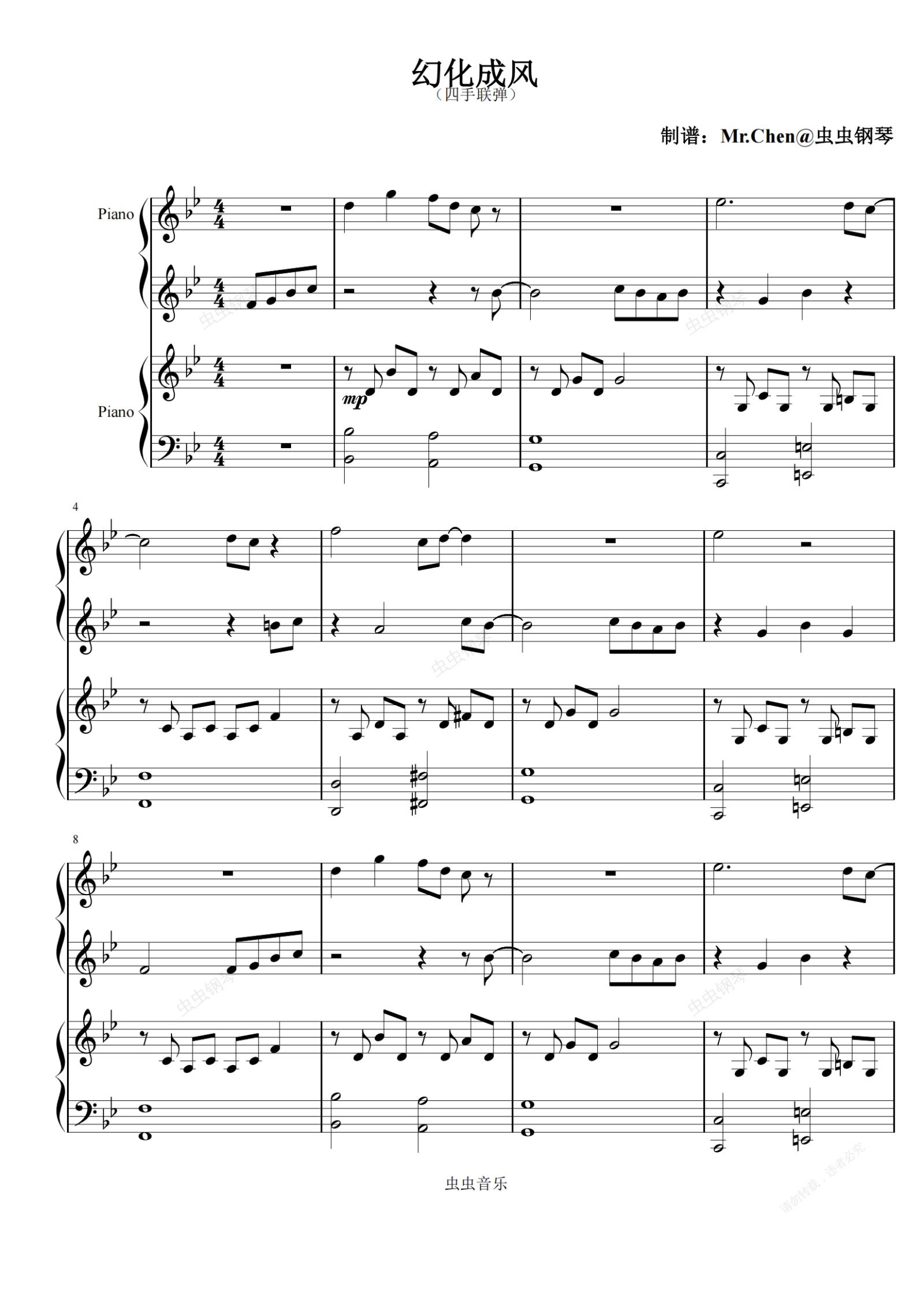 钢琴谱:幻化成风 (四手联弹)-动画电影《猫的报恩》片尾曲