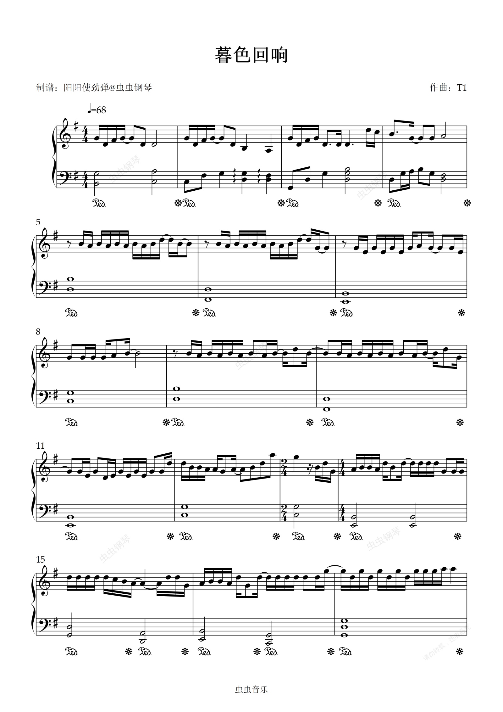 钢琴谱:暮色回响-吉星出租 《原调简易版》