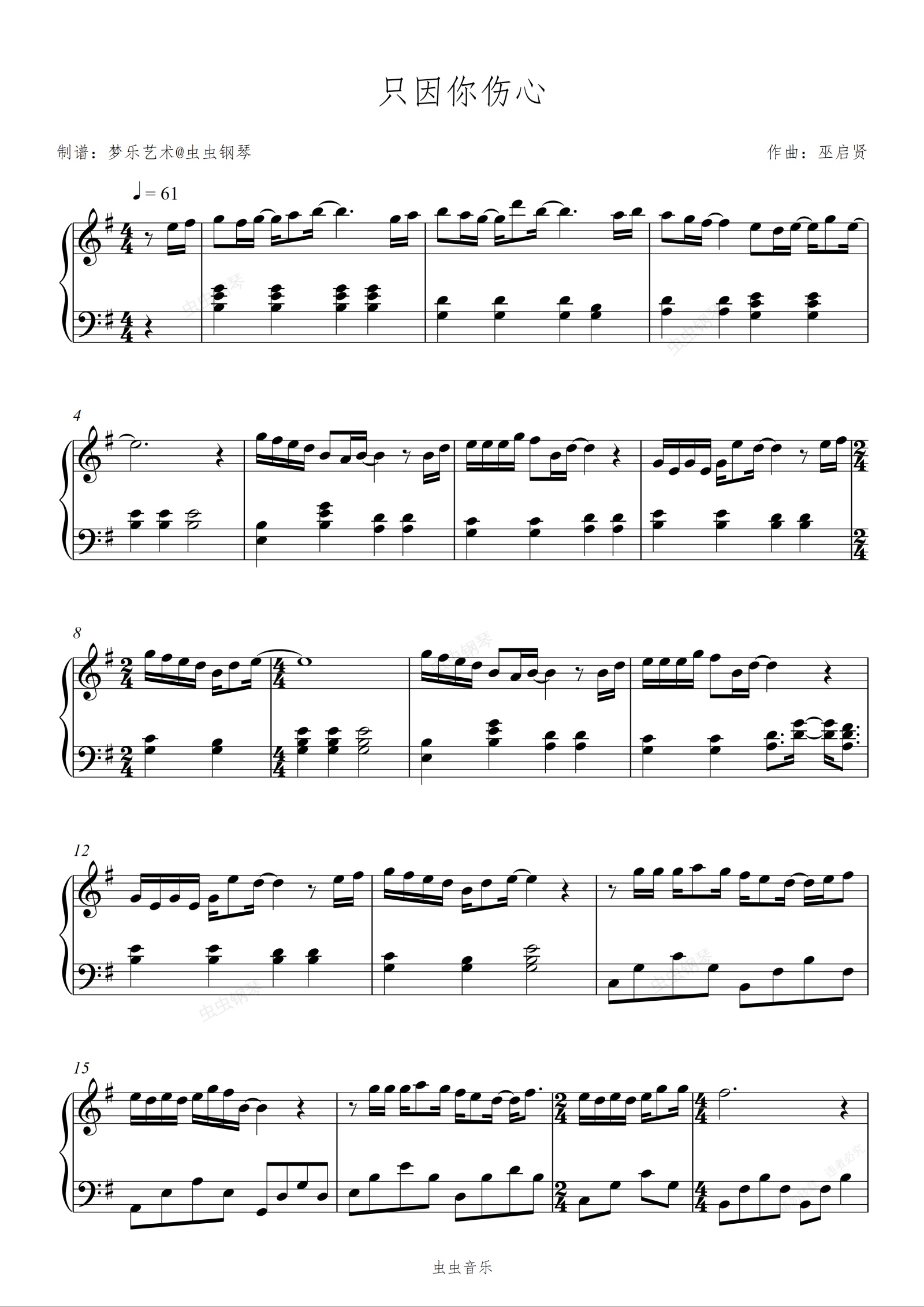 钢琴谱:粤语金曲 只因你伤心 巫启贤 原调G