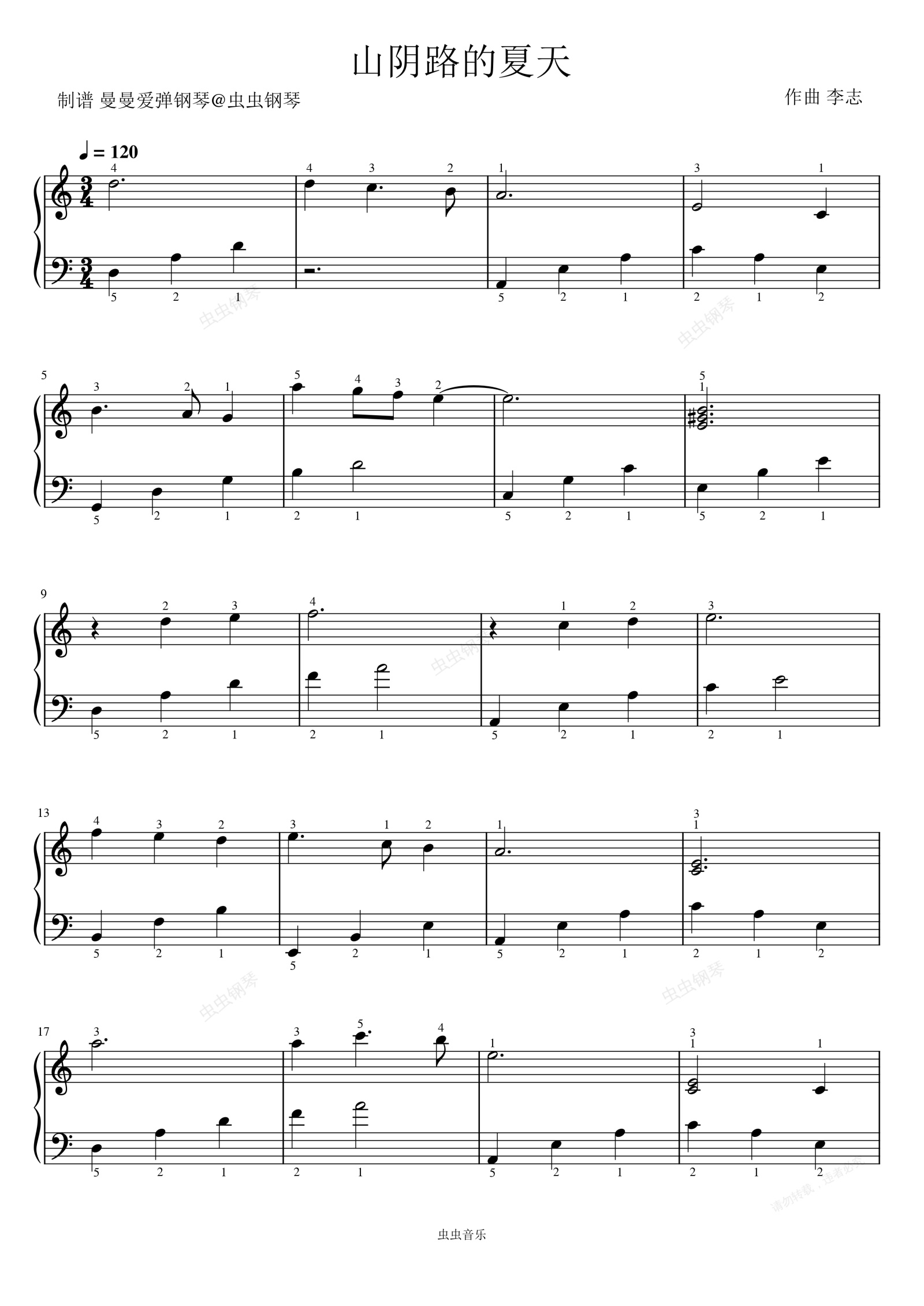 钢琴谱:山阴路的夏天 间奏 C调 好听 好弹