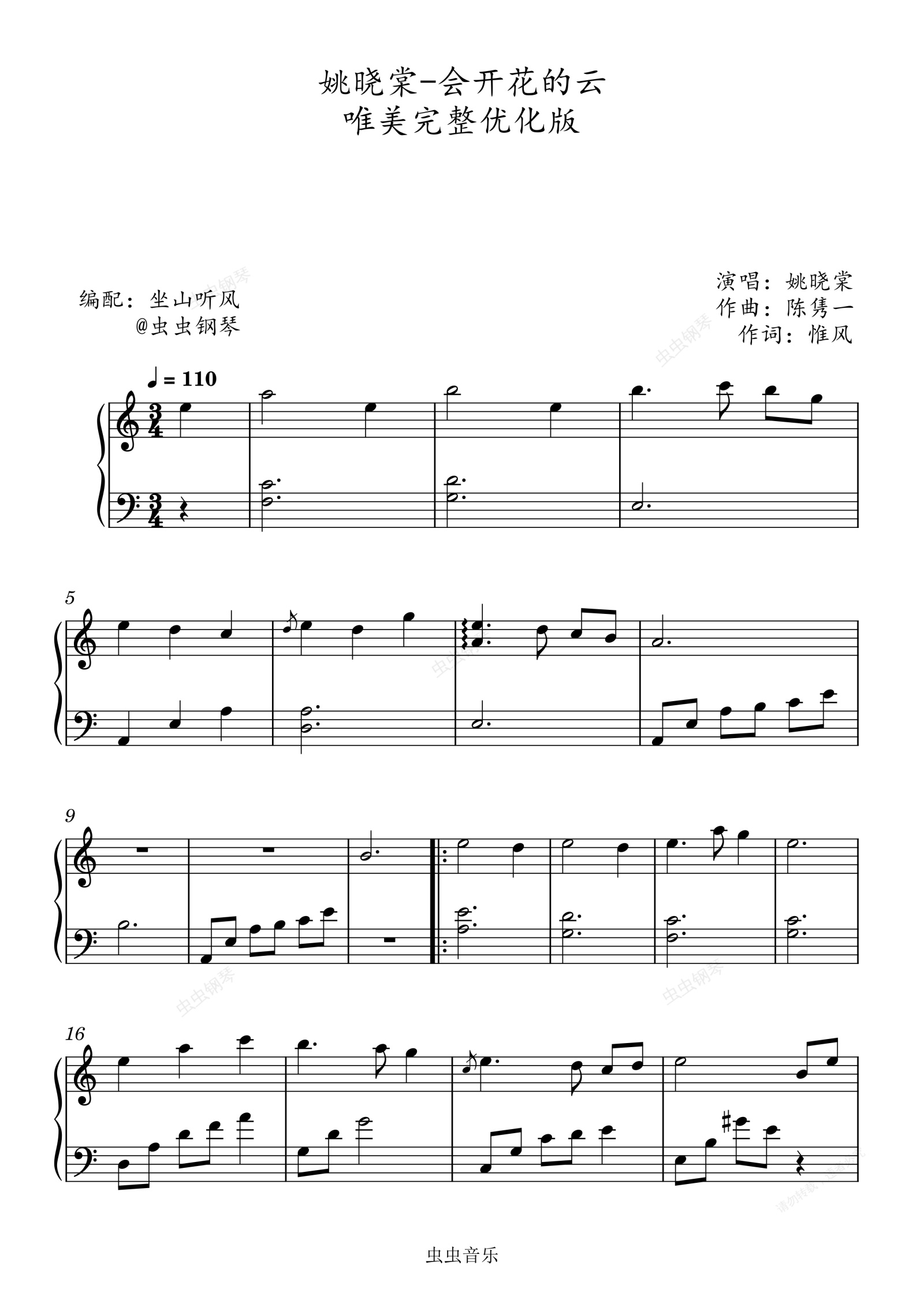 钢琴谱:会开花的云——唯美完整优化版【C调】
