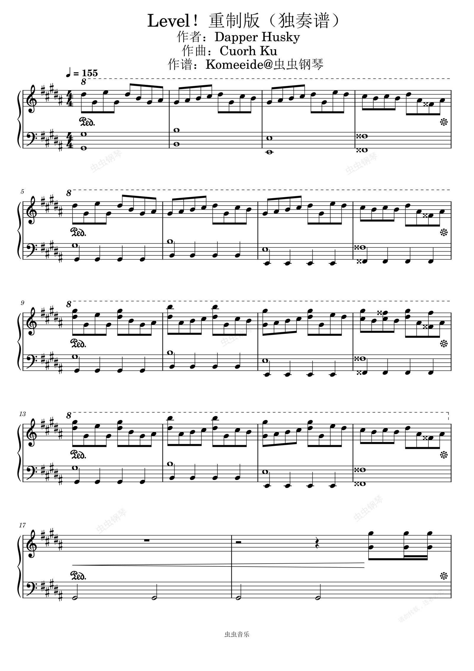 钢琴谱:Level!重制版(独奏谱)- Dapper Husky 独奏谱 中难度 五线谱 g♯和声小调