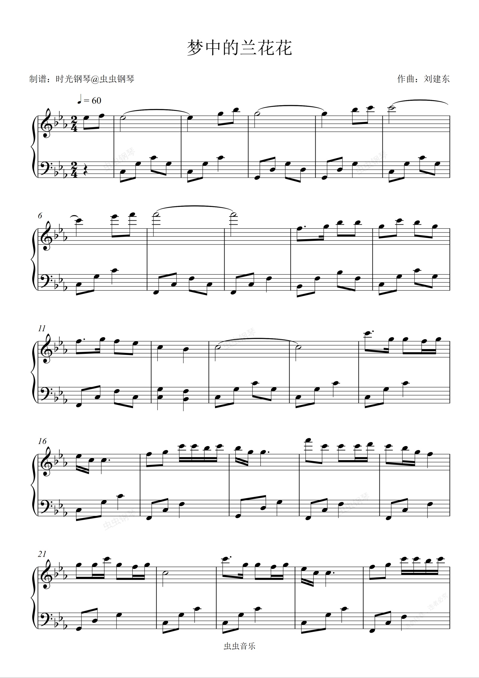 钢琴谱:梦中的兰花花 刘建东 降E简易