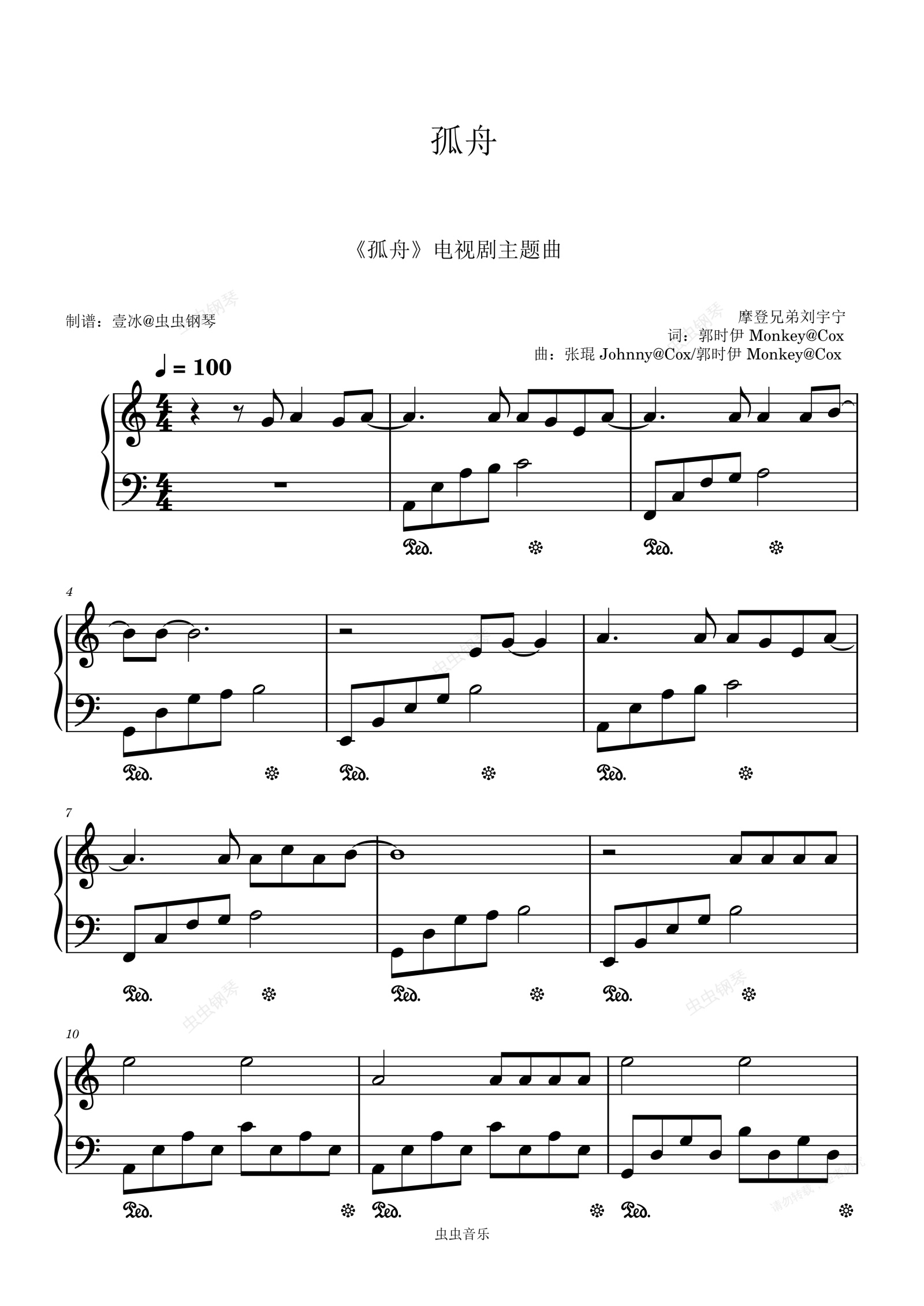 钢琴谱:孤舟 (《孤舟》电视剧主题曲) 摩登兄弟刘宇宁 C调