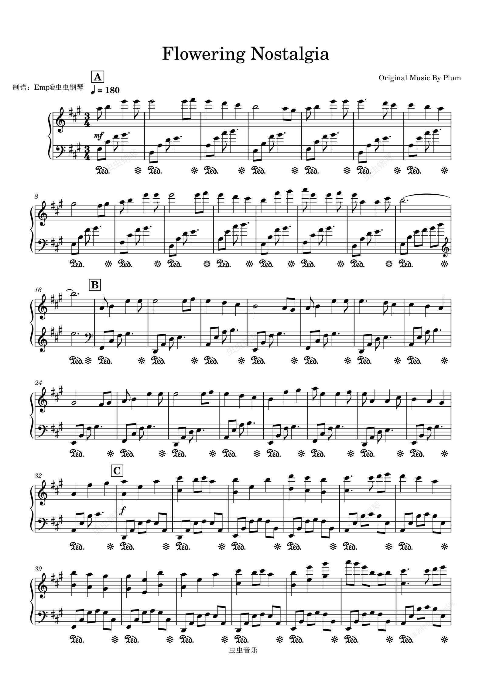 钢琴谱:【纯音乐】Flowering Nostalgia —— Plum新曲 钢琴扒谱分享