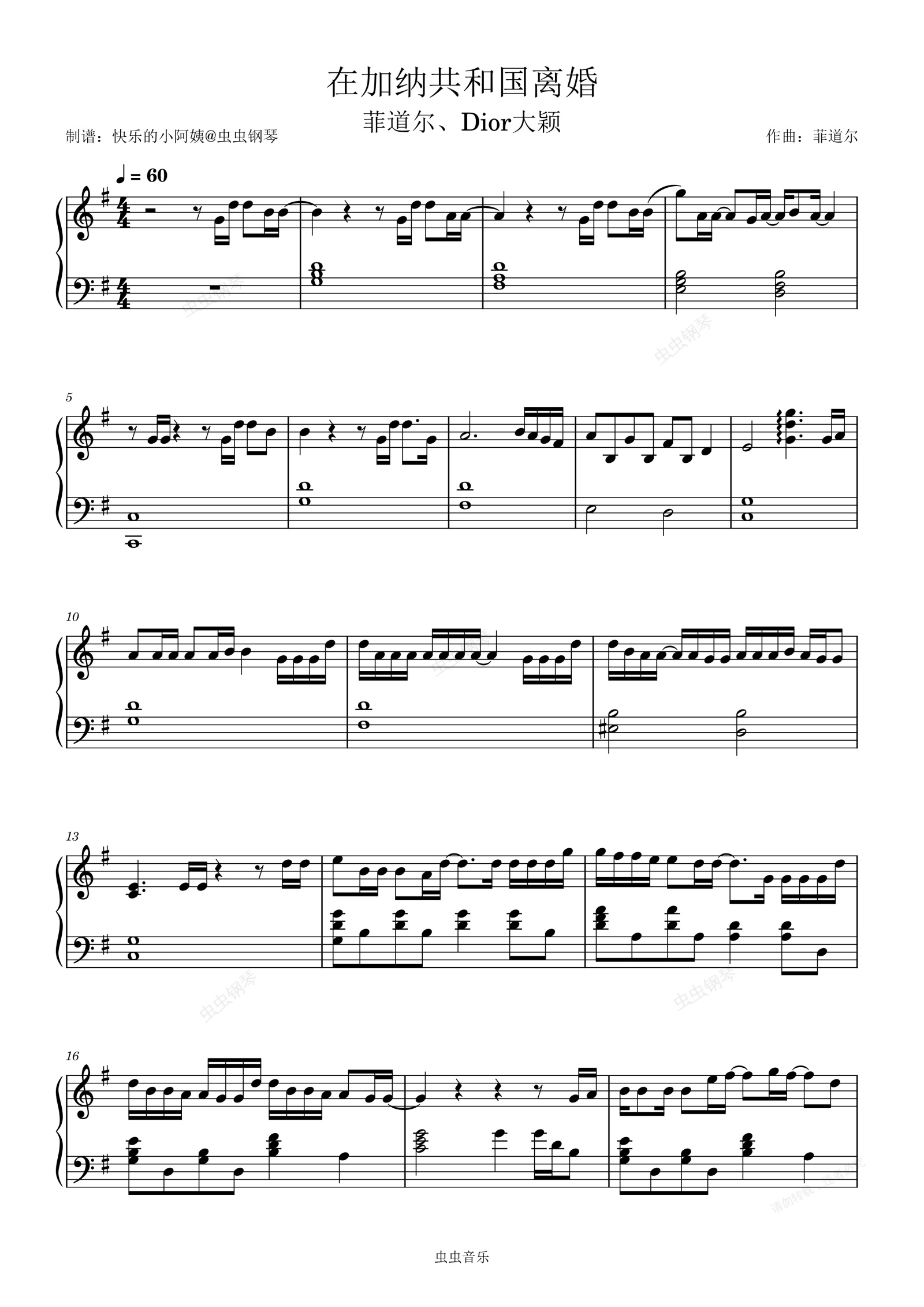 钢琴谱:在加纳共和国离婚-菲道尔,Dior大颖