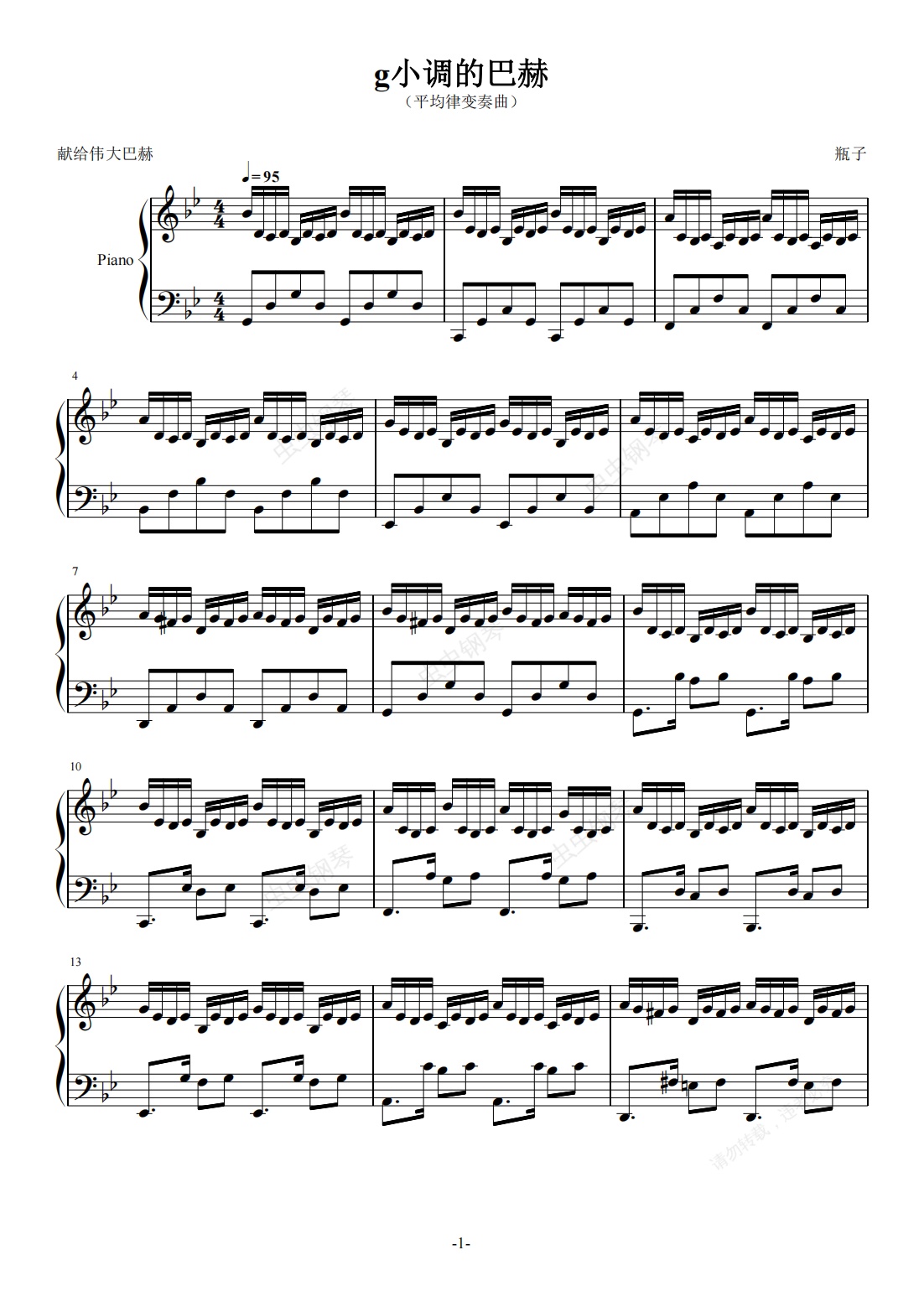 钢琴谱:g小调的巴赫