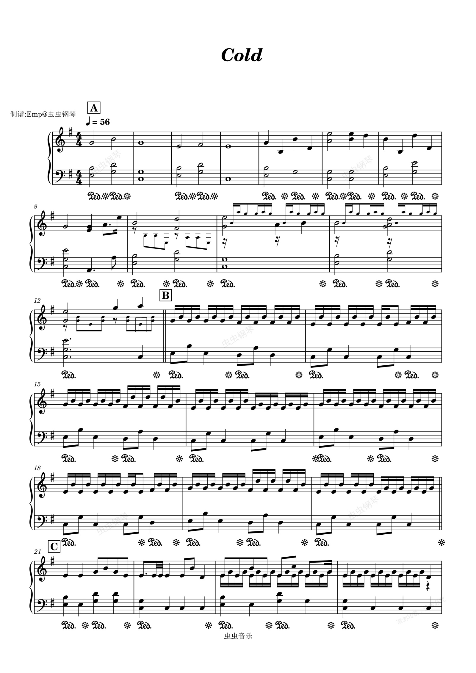 钢琴谱:【纯音乐】Cold — Laurel Violet 孤寂而神秘的旋律