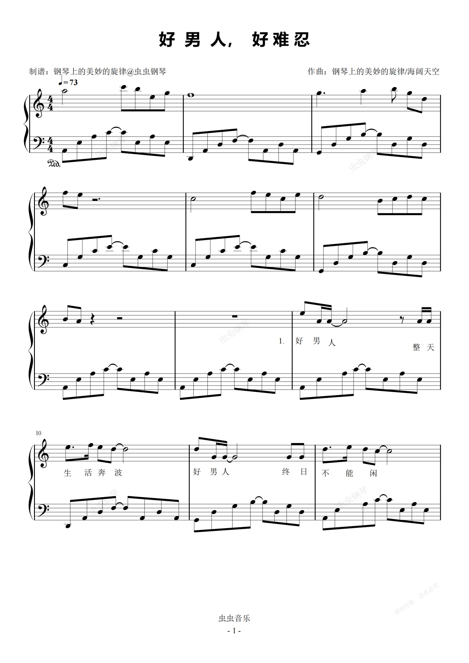 钢琴谱:好男人,好难忍 C调简易版 带歌词