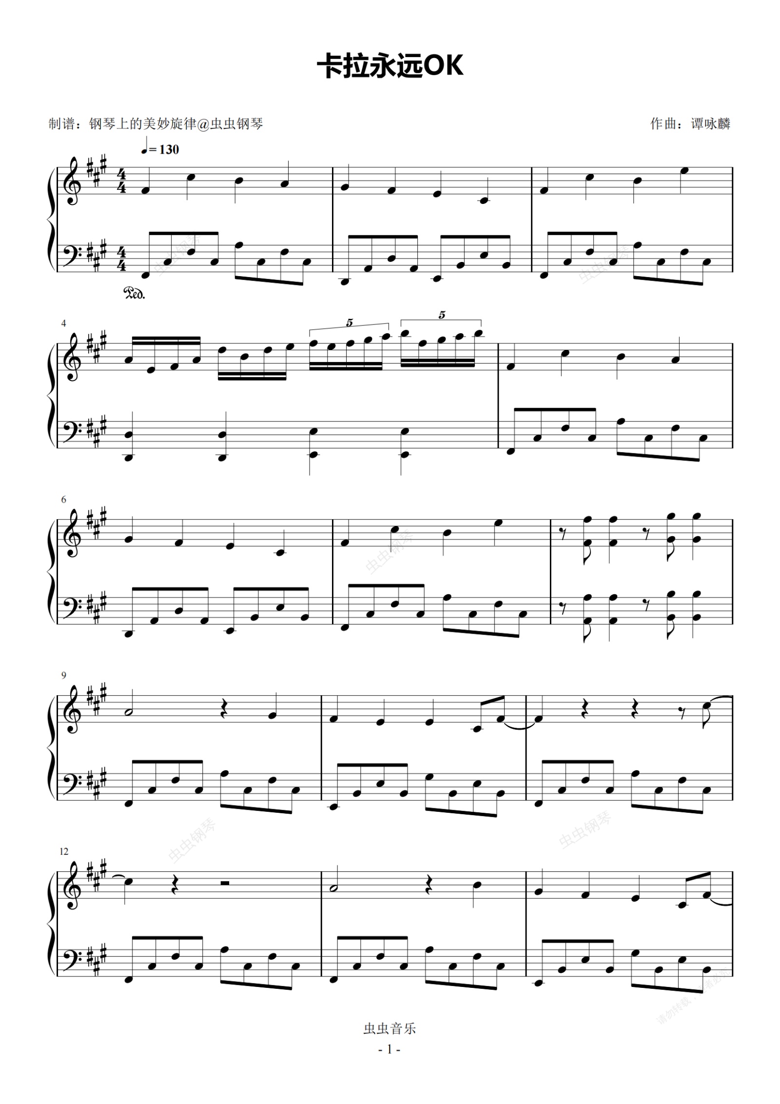 钢琴谱:卡拉永远ok  原调简易版  谭咏麟  流行经典