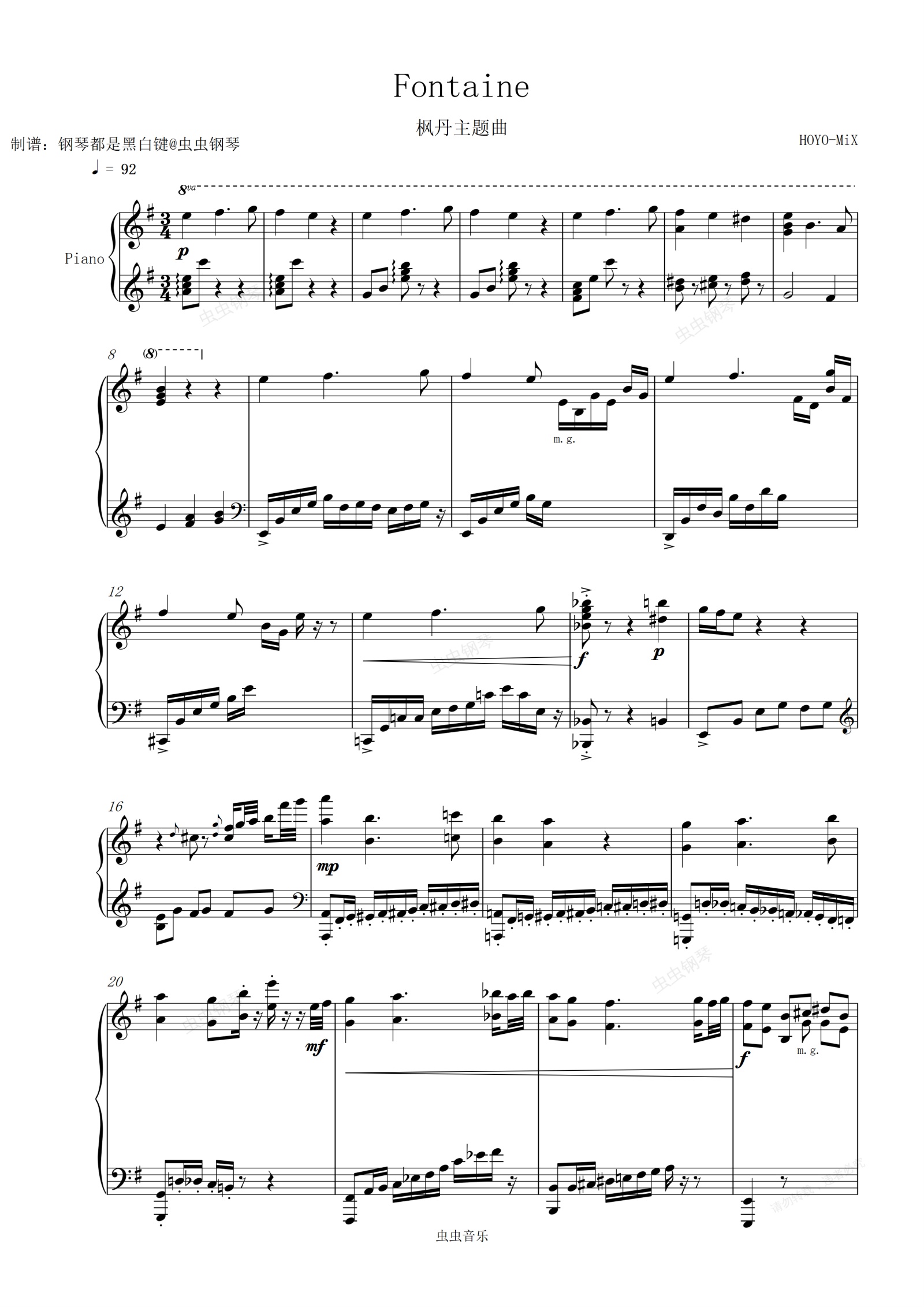 钢琴谱:【原神爆燃钢琴独奏】枫丹主题曲 枫丹Fontaine