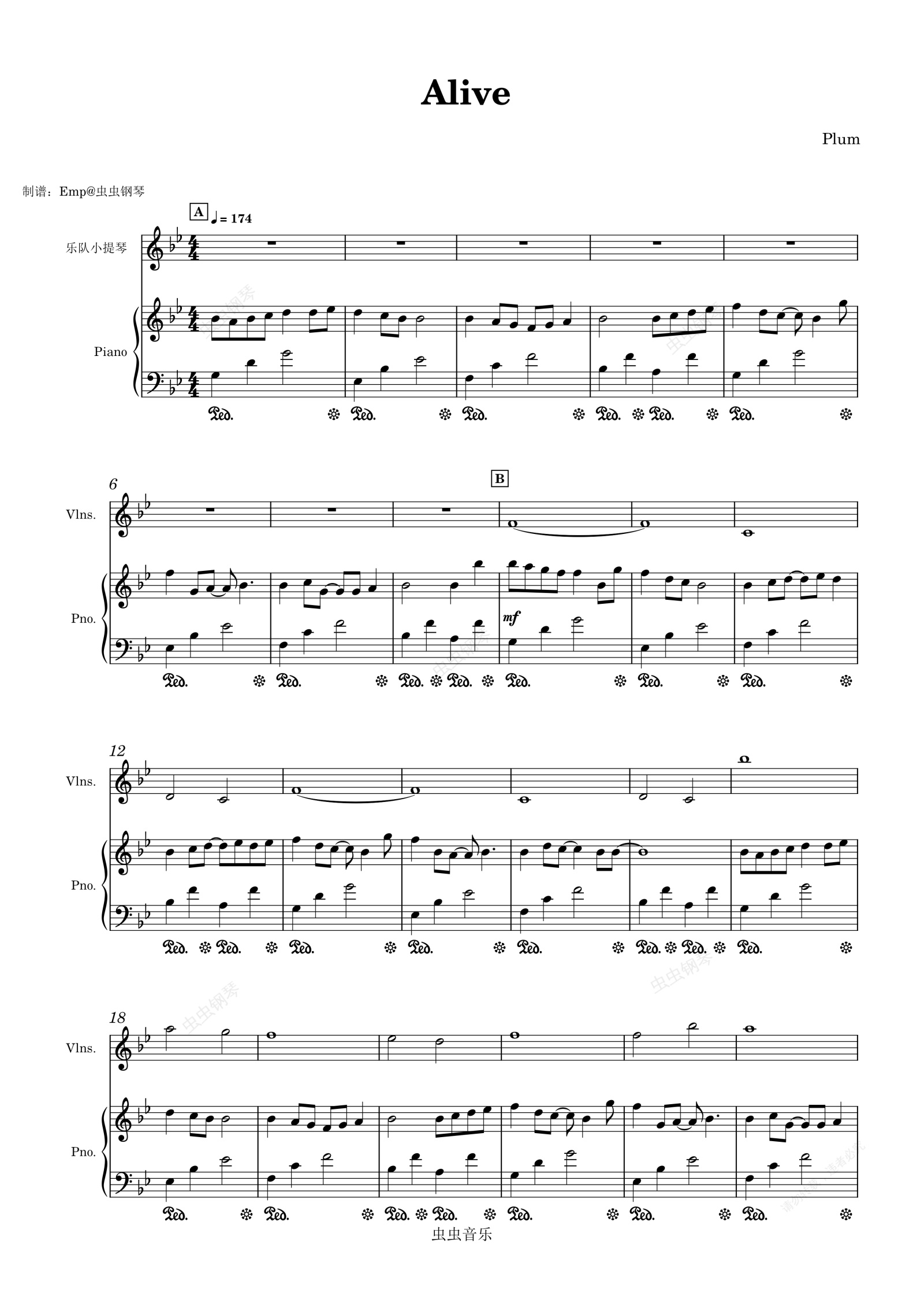 钢琴谱:【纯音乐】Alive (By Plum) 钢琴+小提琴扒谱 —— 向阳而生,曙光不绝