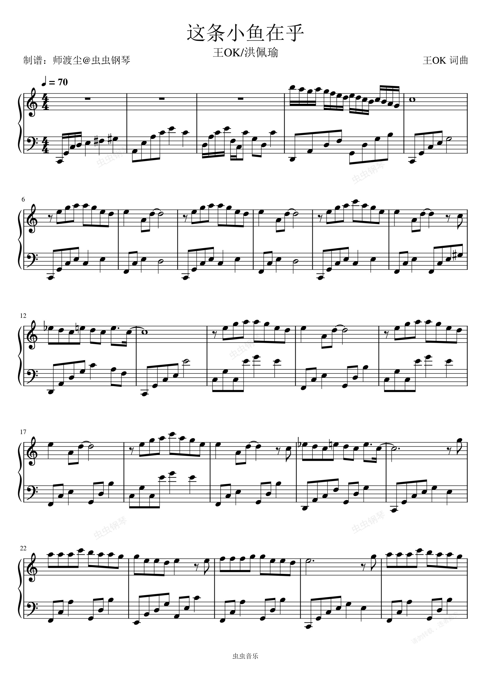 钢琴谱:这条小鱼在乎钢琴谱C调-王OK/洪佩瑜