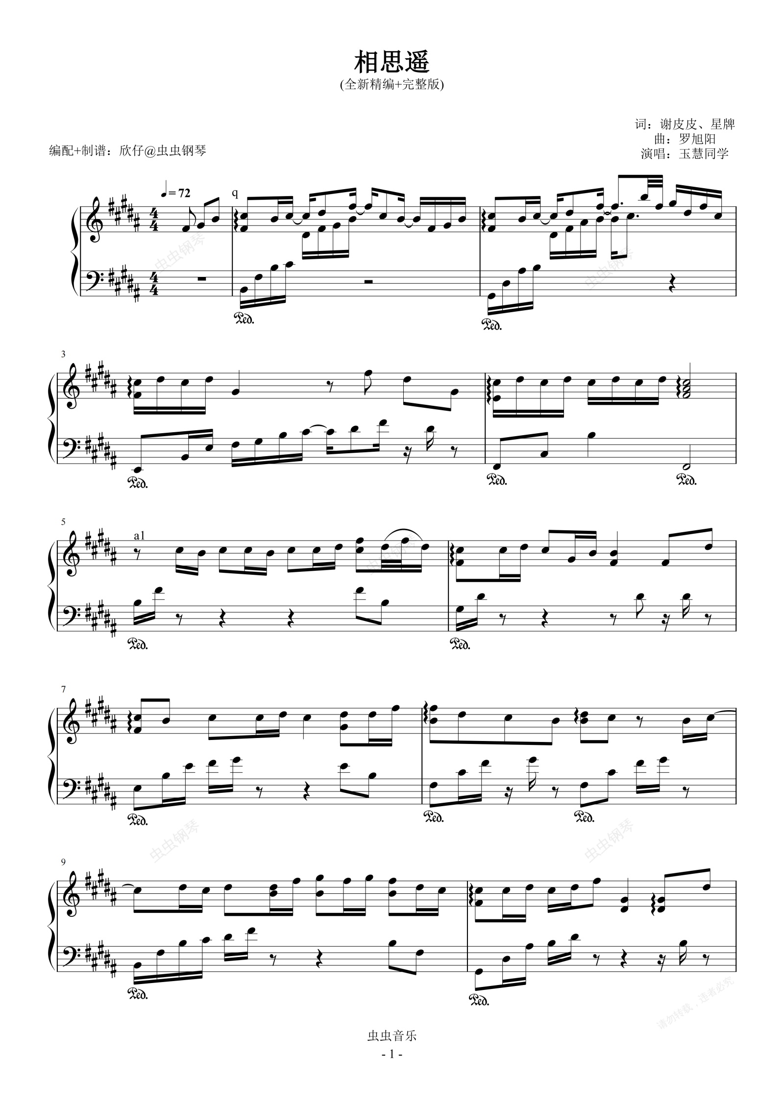 钢琴谱:玉慧同学-C《相思遥》(全新精编+完整版)