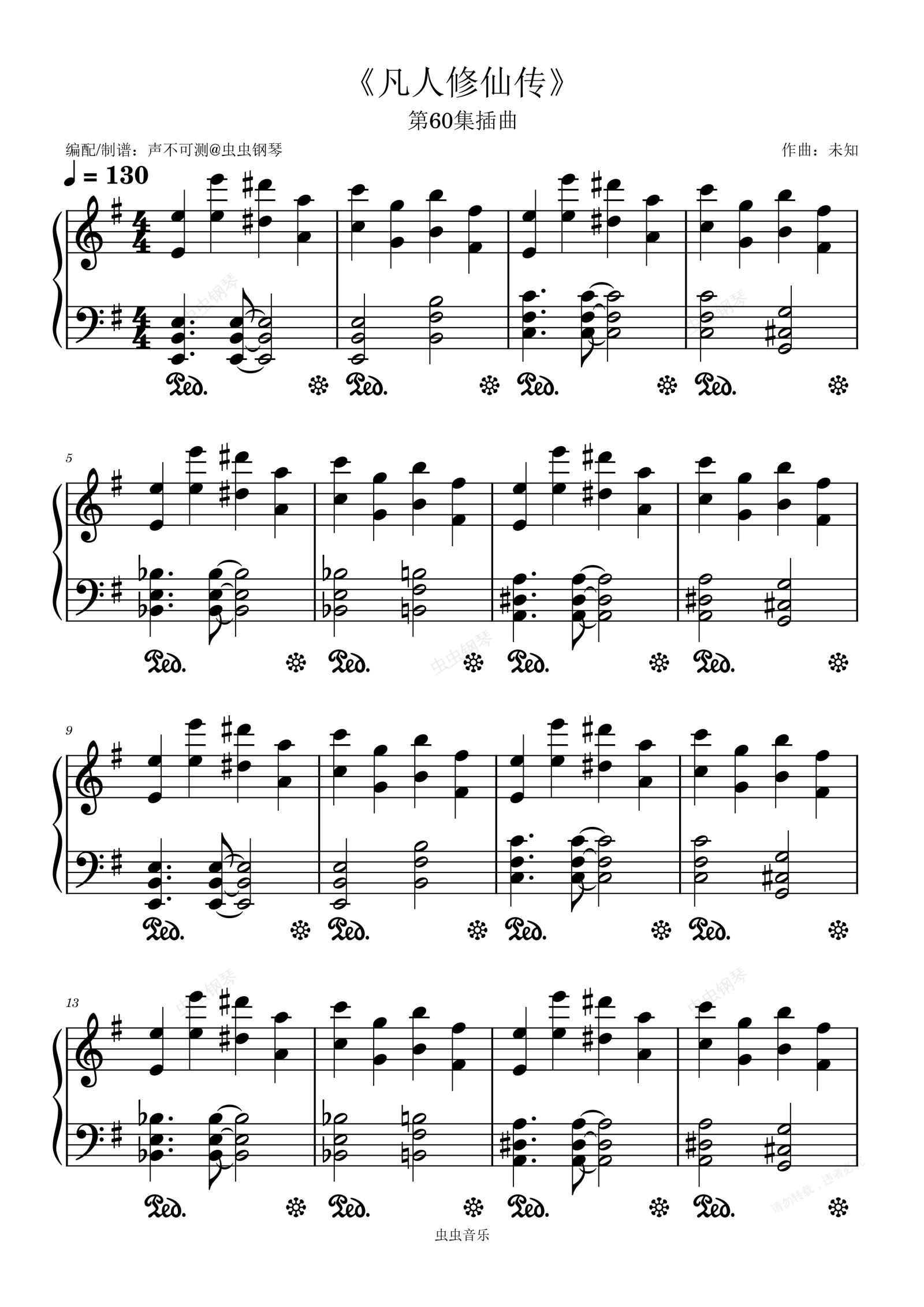 钢琴谱:《凡人修仙传》第60集插曲 - 声不可测 编配