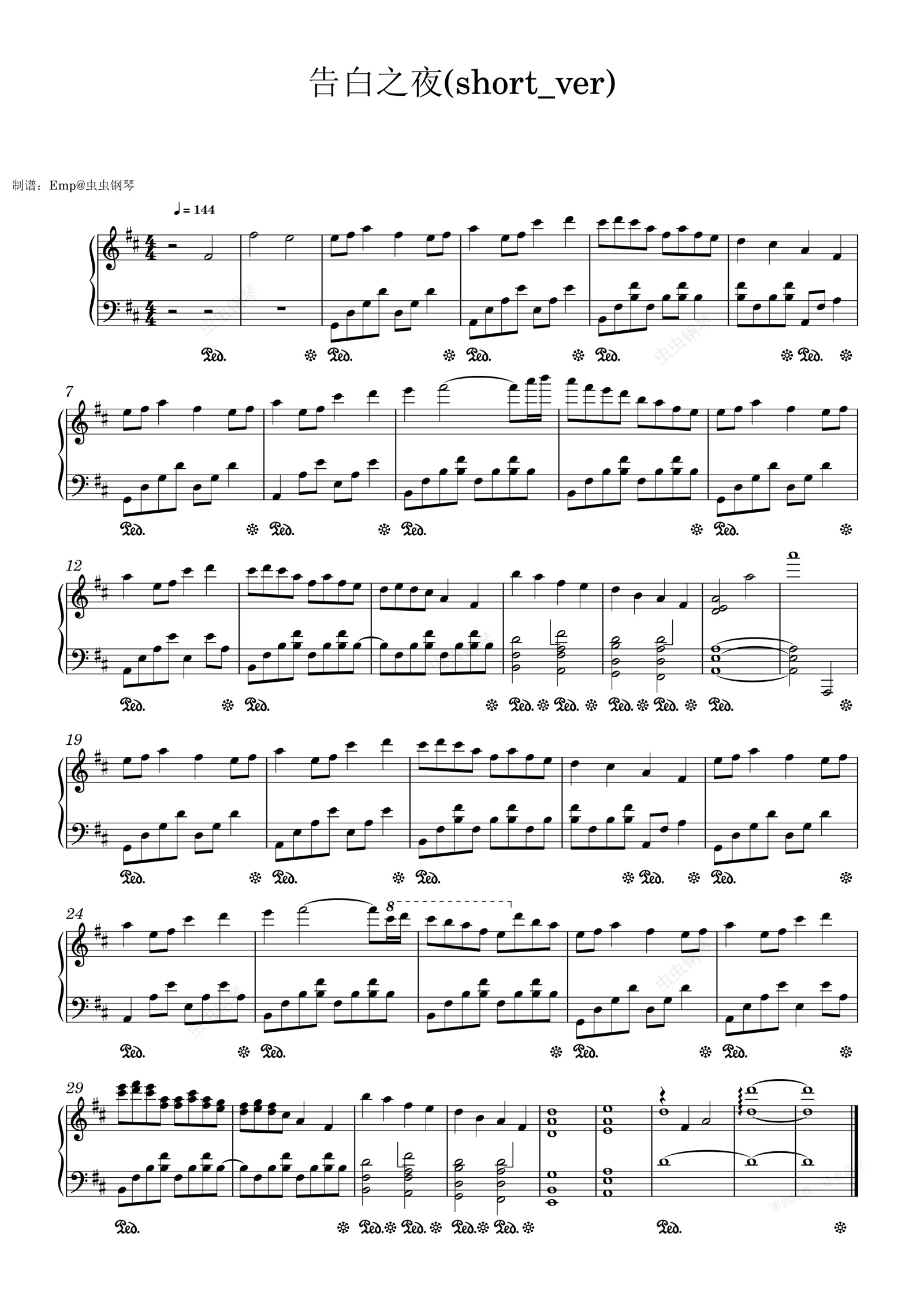 钢琴谱:告白之夜(short_ver) 纯钢琴版本