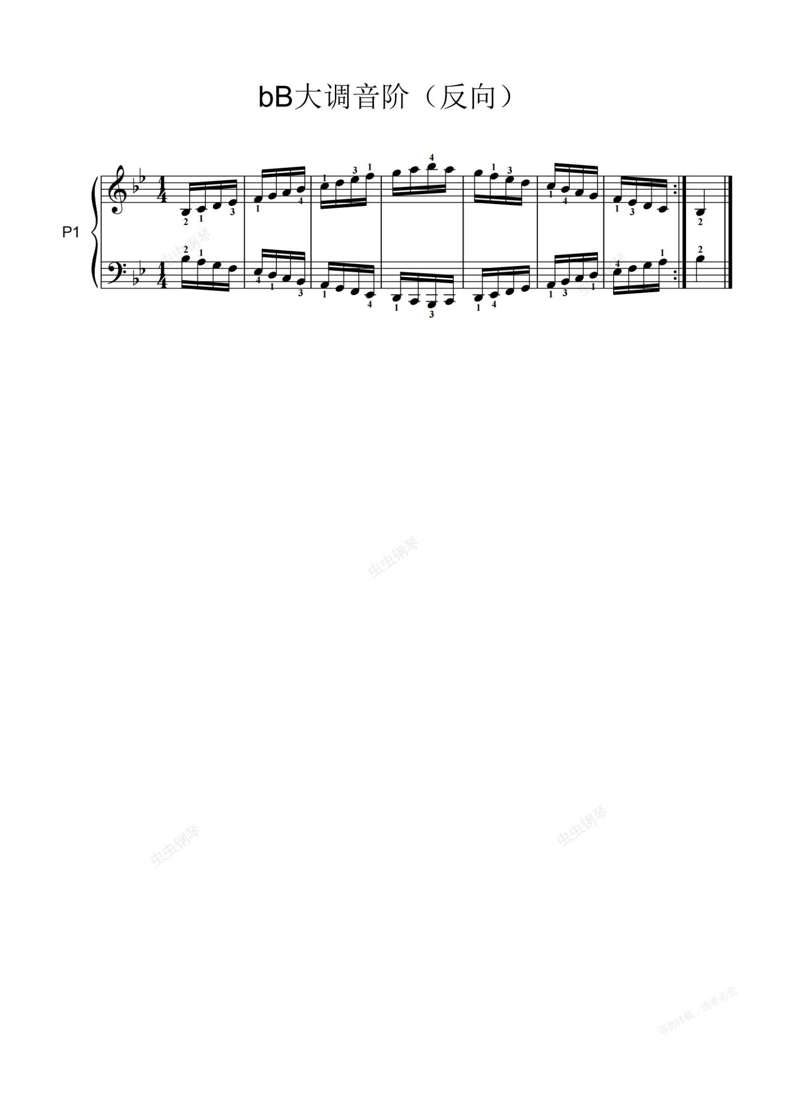 钢琴谱:1-21.2 bB大调音阶(反向)