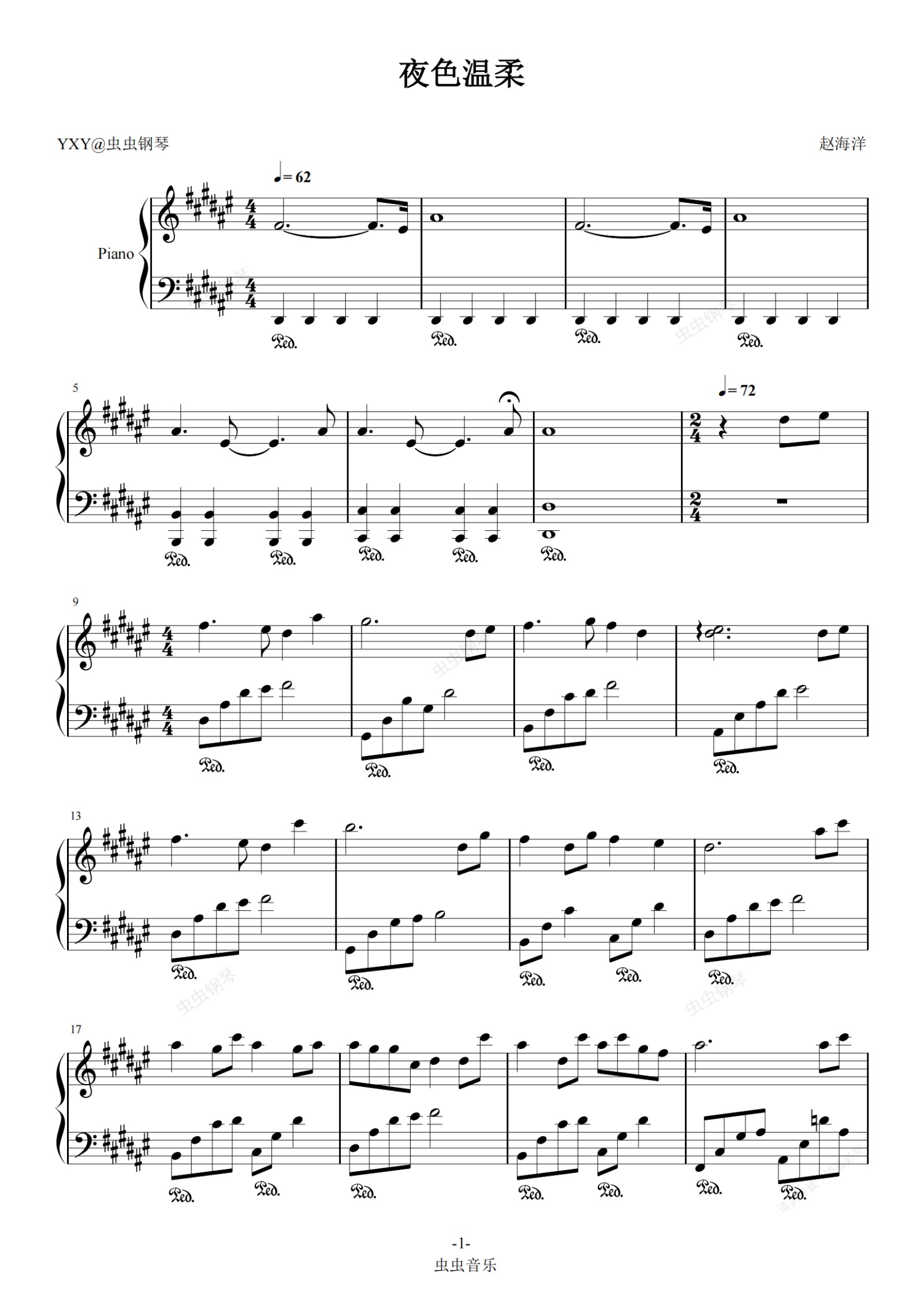 钢琴谱:夜色温柔(原调)
