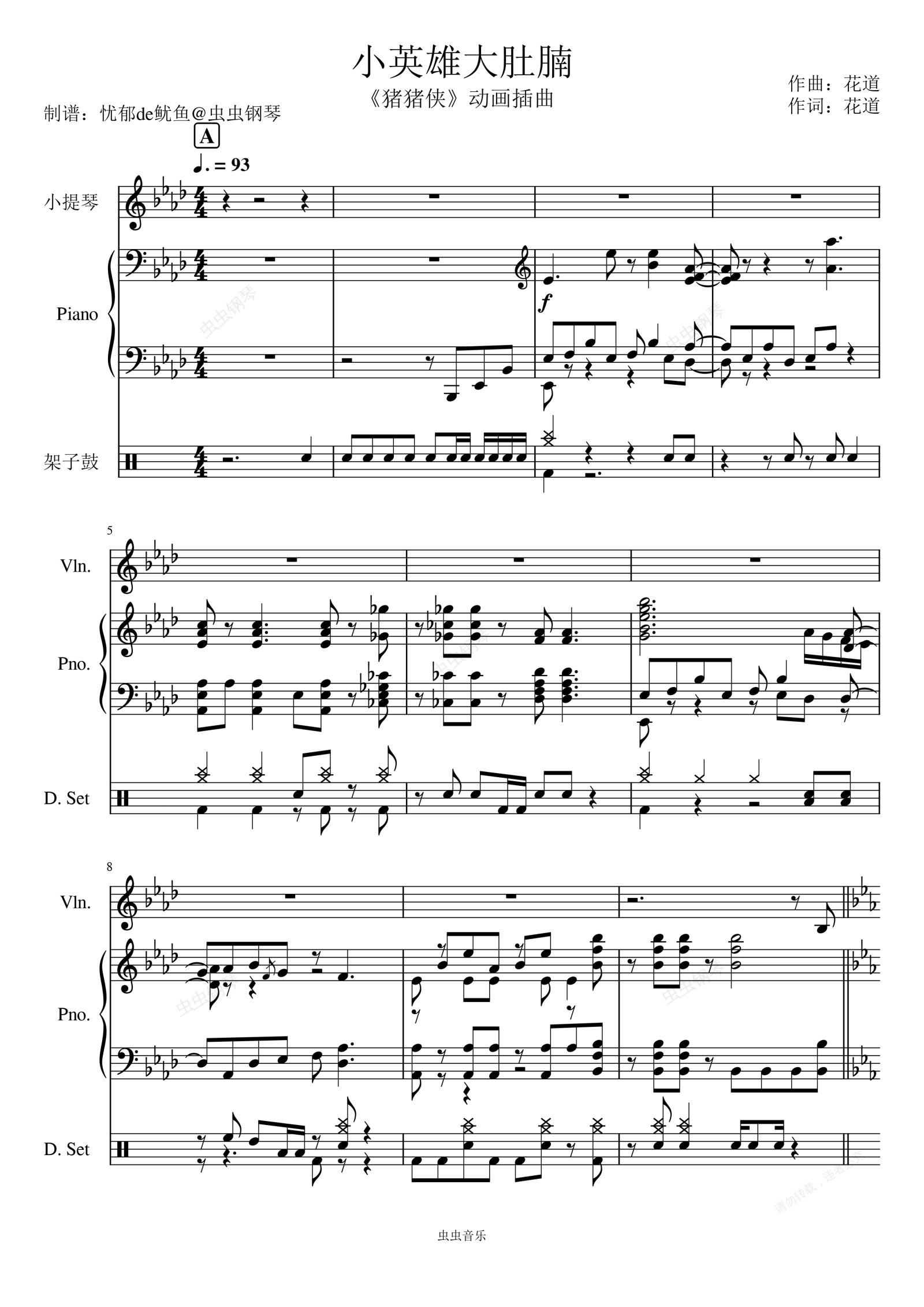 钢琴谱:《小英雄大肚腩》——《猪猪侠》动画OP