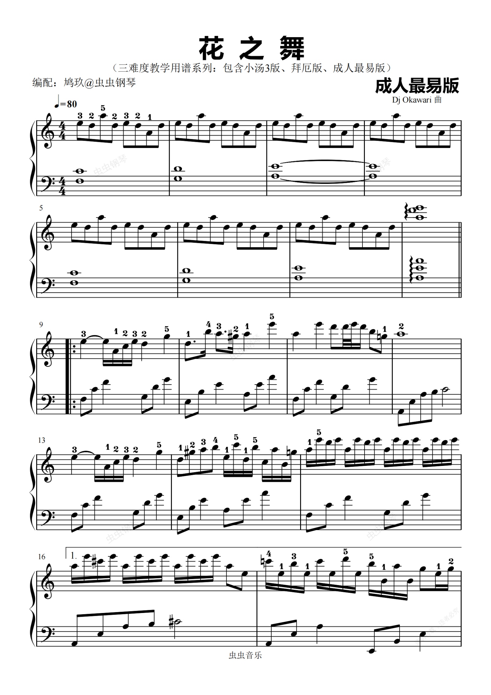 钢琴谱:花之舞(成人最易版)三难度教学谱系列