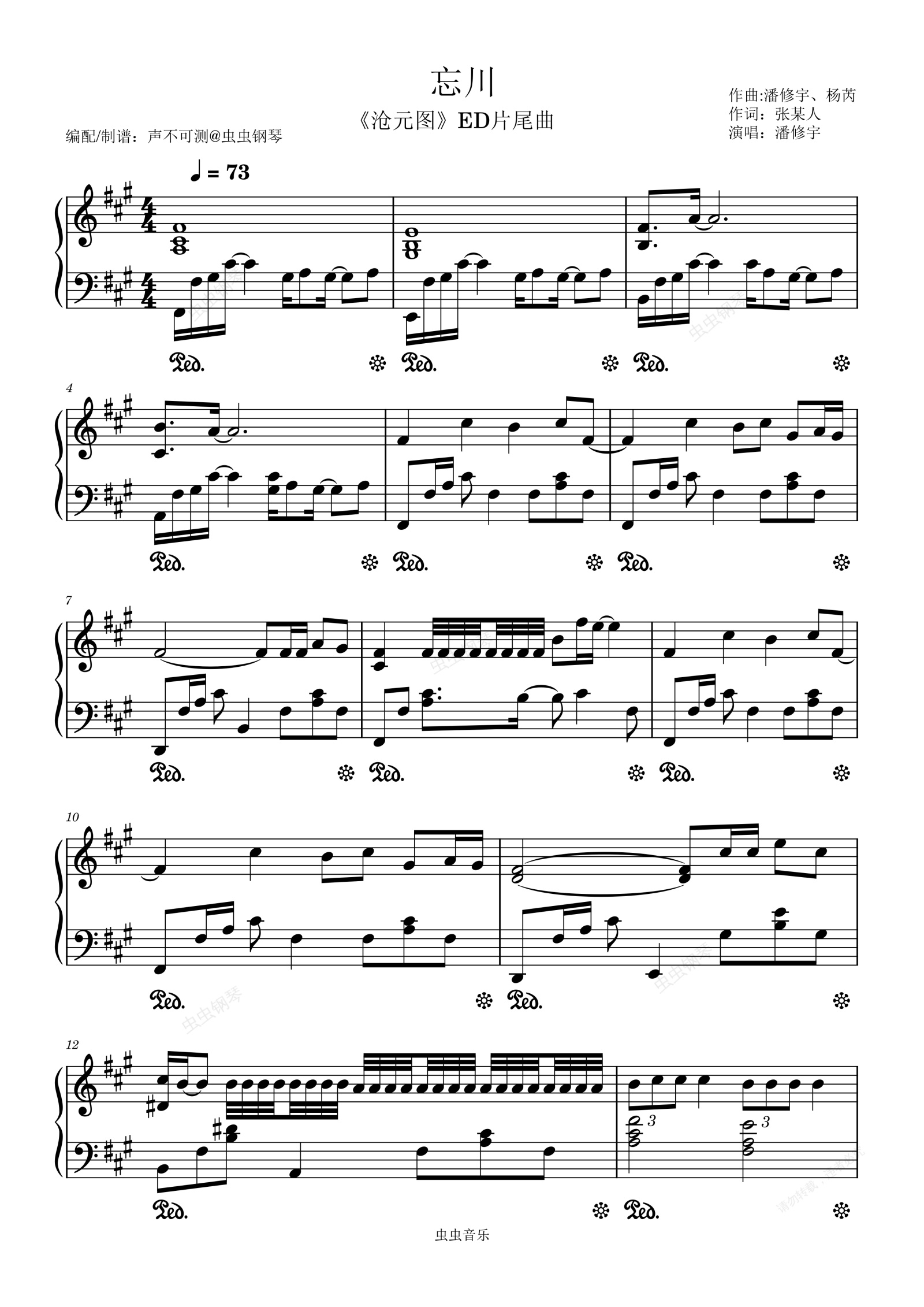 钢琴谱:忘川《沧元图》ED片尾曲 - 声不可测